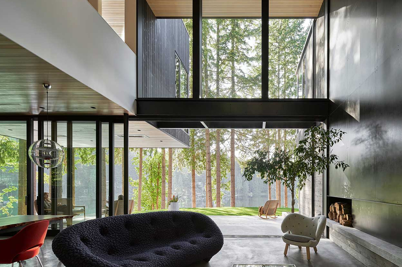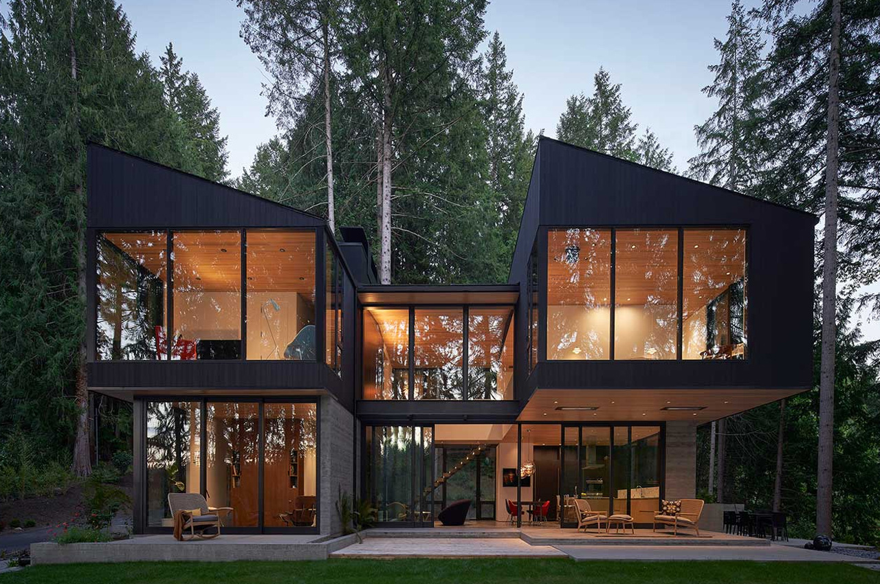 The home occupies almost 3900 square meters and was designed by Stephenson Design Collective. The lakeside locale is considered a protected area, and hence the architect took special care to ensure that the home and its construction gently interacted with the natural surroundings, without immensely disturbing them or causing them any harm. The architect had to be extremely sensitive while designing and constructing the home, which they were successful at, resulting in the creation of a beautiful glass, concrete, and wood home that pays tribute to the surrounding Pacific Northwest forests, as well as the Danish heritage of the owner of the home.
