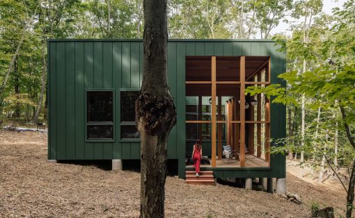 The facade was created to help the home merge harmoniously with its natural surroundings, allowing nature to grow both indoors and outdoors. Plants are welcome to grow along and up the home’s exterior, while also being visible from within, which adds an even more fascinating twist to the residence.