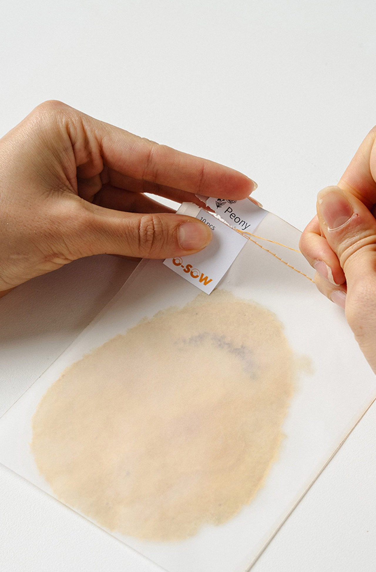 “Since we are talking about an orange slice, it can easily dissolve in moisture and liquids. Animals eat it, and it decomposes in the ground and even on a sidewalk on the street.” said the designer. “Seeds of different plants are woven into O-SOW and with the help of the nutrient-rich human waste, natural seeding occurs simply through its use. The seeds I used are mint, peony, rose, parsley, and cress, but I aim to map popular trekking areas and assign each a number of seeds suitable for growing.”