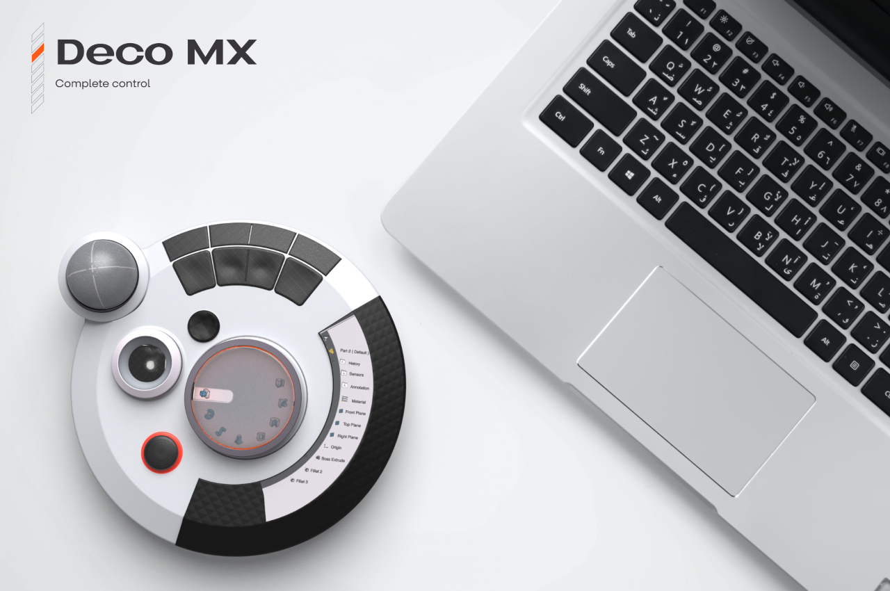 The rest of the device is made to give easier access to the tools that a designer needs when building those 3D models. There are programmable buttons to set your own shortcuts within the app, as well as dials to switch tools quickly. The central dial is, in fact, the biggest control on the Deco MX, and it gives access to the most common building and editing tools in a program. You can change which tools those are to suit your workflow, of course.