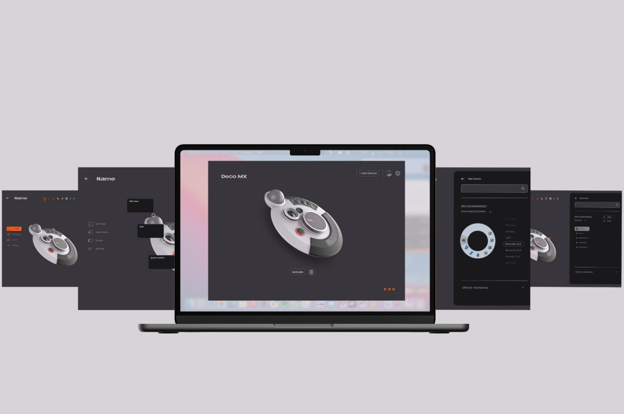What makes the Deco MX extra interesting is the amount of screen on it. There’s one that arcs to the side, showing a history of actions you’ve taken so far. The central dial also has a screen underneath that changes depending on the tools you’ve set to be your favorite ones. There’s also a small circular screen to the side that shows you the currently selected tool without having to squint your eyes too hard.