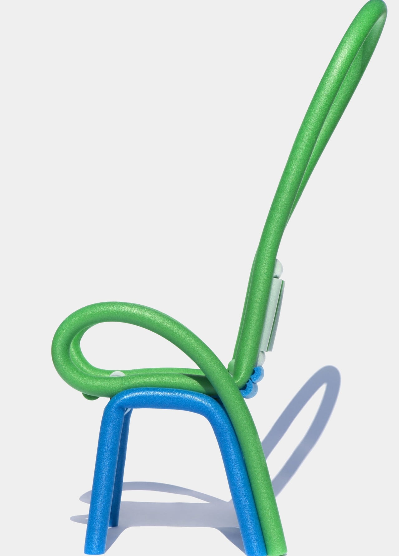 They may come by any other name, but pool noodles are a popular component in many fanciful designs, from playground obstacle courses to car covers. Their ubiquity, affordability, and flexibility make it easy to shape them into different objects, combining them to form a more complex composition of rods, circles, and arcs. What pool noodles aren’t known for is stability and rigidity, properties that are almost antithetical to the very essence of these foamy objects. And yet that’s exactly what this furniture is presenting, mixing contrasting elements to give the designs a distinct, lively character.