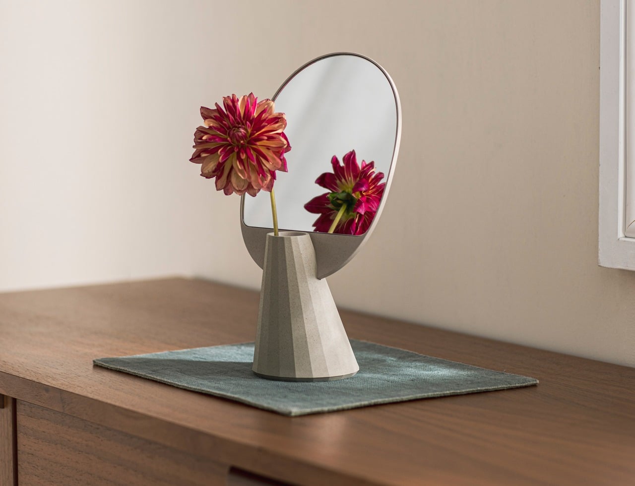 This pretty multifaceted mirror lets you capture the essence of nature and the beauty of your accessories. It is a smart product designed to function as an accessory stand and a vase. It transcends conventional use and functions as a unique dual-functional product.