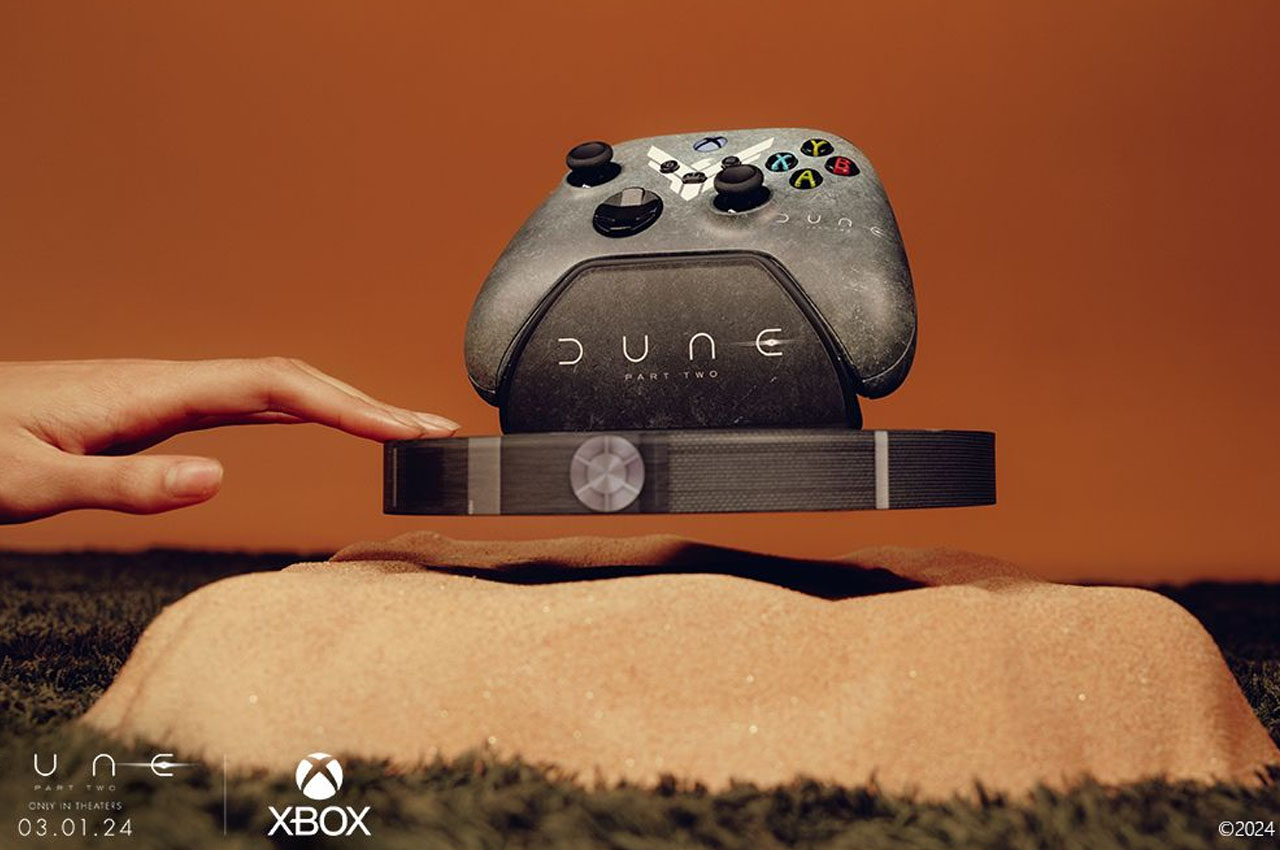 Microsoft unveiled a Dune edition controller in collaboration with Warner Bros and Legendary Pictures to promote the release of the movie. The unique controller has a levitating feature, which essentially means that the controller rests on a stand that floats, although we’re unsure how this is achieved, but we guess magnets were used.
