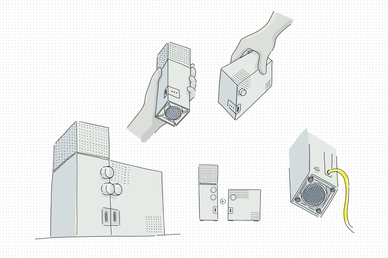 Like any brutalist design, the speakers express rawness, expressed through metal instead of concrete and accentuated by the use of the simplest geometrical shape and sharp edges. In terms of functionality, however, there is nothing unrefined about the Agnes speaker concept, and it even imagines a feature not found in any 360-degree speaker today. While the lower knob controls the speaker volume, the one above it determines where sound is directed, whether it’s only from the front, from the front and the sides, or from all four sides.