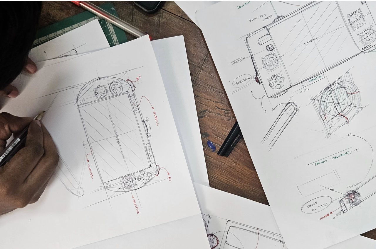 Nidarshan employed parallel prototyping using thermocol models to fine-tune the final handheld design that falls right into place. As a TE fan, I immediately found a connection between two different worlds of audiophile bliss and gaming frenzy in this product. A cohesive form that’s minimal while retaining the ergonomic comfort of playing games for extended sessions. The color theme also piques interest in the form of orange, black and white buttons for the joystick and D-pad buttons.
