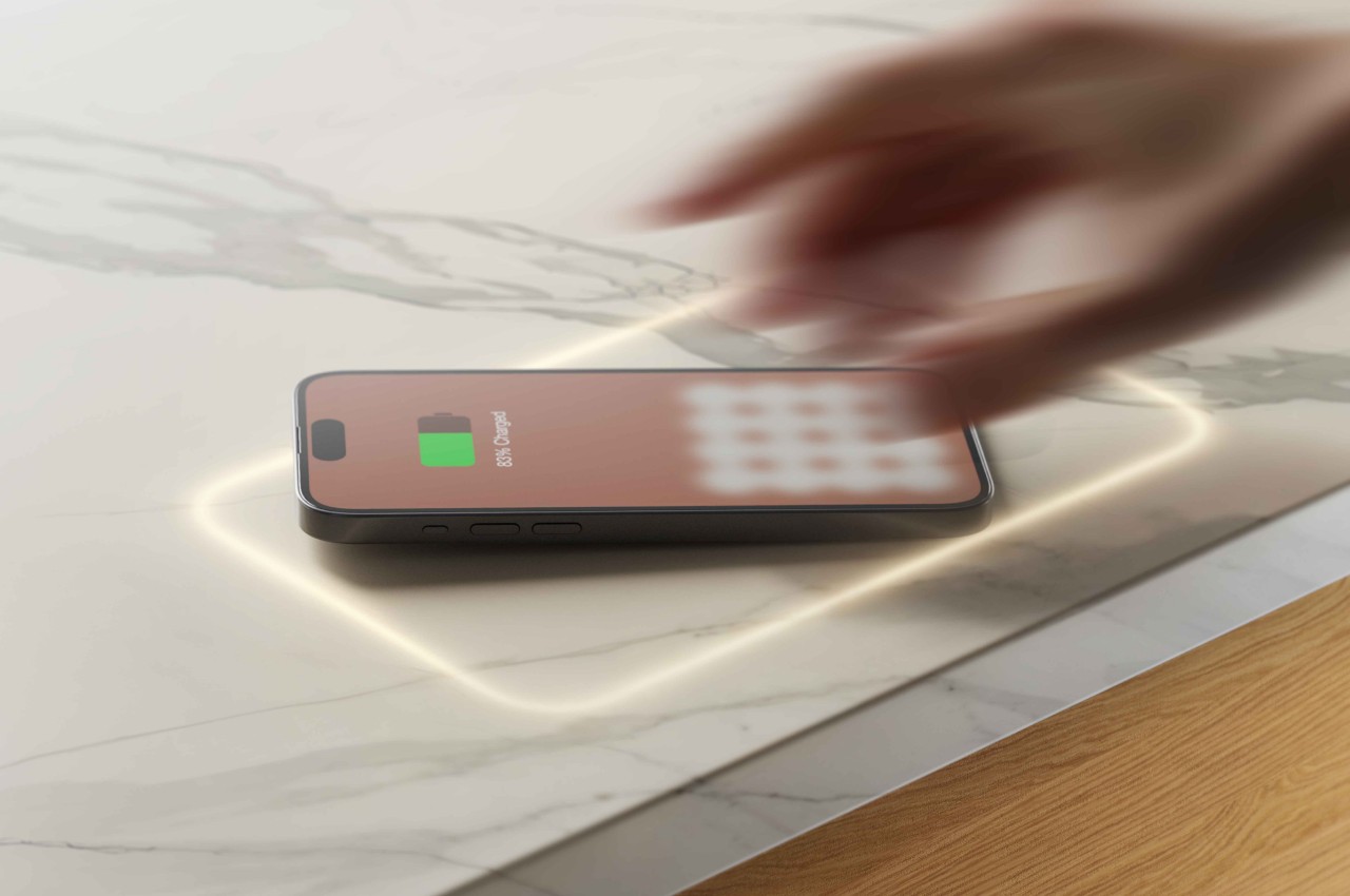 FreePower is a technology that tries to offer the best of both worlds, combining the liberating convenience of wireless charging with a clean and unblemished tabletop surface. In a nutshell, it embeds the wireless charger inside the countertop, and not just any countertop, mind you. It is compatible with different stone materials, including quartz, granite, or even marble, materials you’d never think could be used for wireless chargers. Thanks to this innovative design, you don’t need to actually put a charging mat or stand on your kitchen countertop, side table, or bedside table, because the countertop itself is the wireless charger.