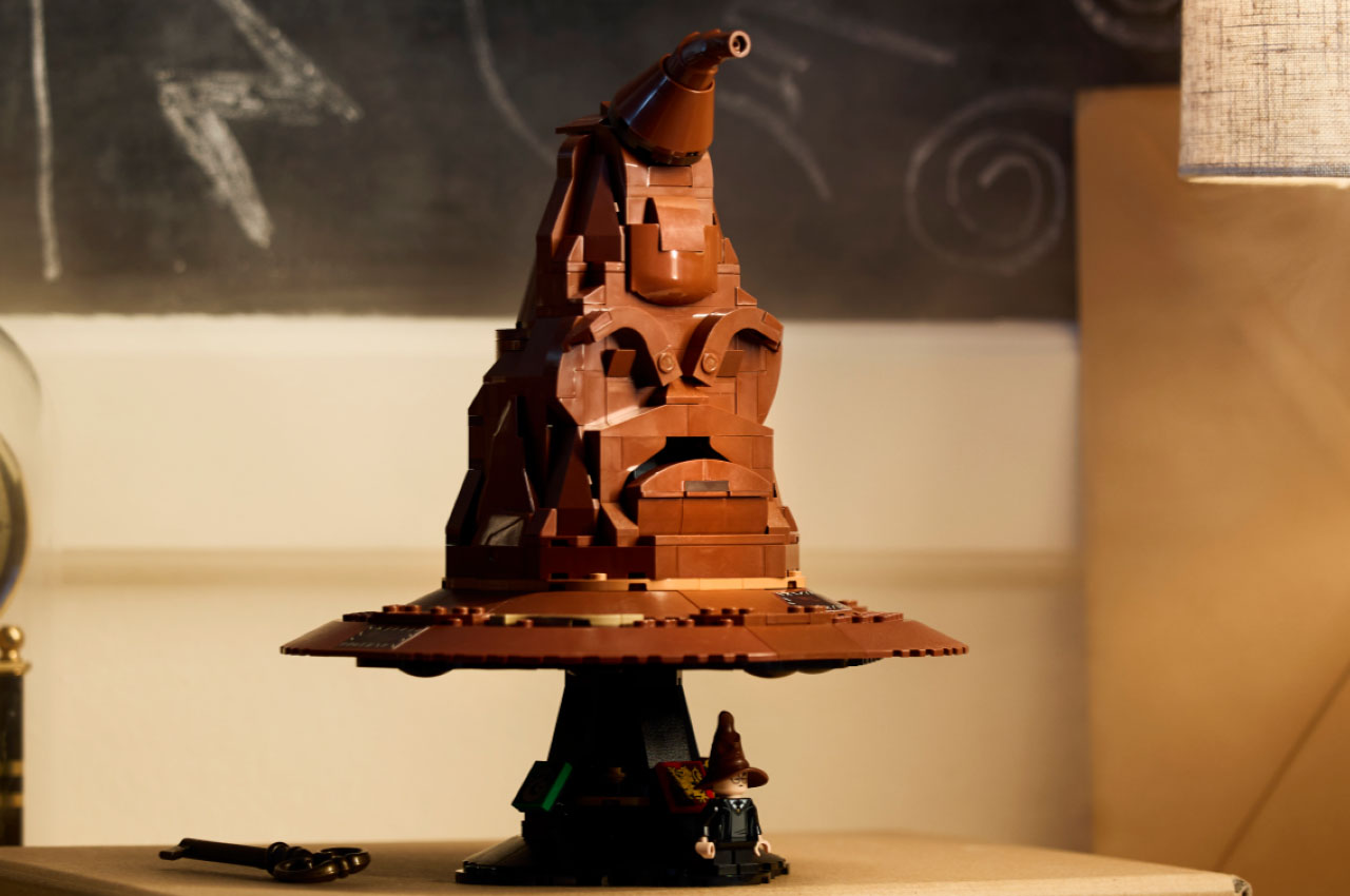 If we’re talking about LEGO builds from our favorite movies, then we obviously need to include something from Harry Potter! The LEGO Group finally launched the Sorting Hat! It is a dedicated LEGO version with a concealed sound box that will let out loud and randomized phrases in English, which we’ve all heard before. It stands at 9.5 inches tall and is 7.5 diameters in length, and can be displayed proudly on a stand that features Gryffindor, Slytherin, Hufflepuff, and Ravenclaw house symbols.