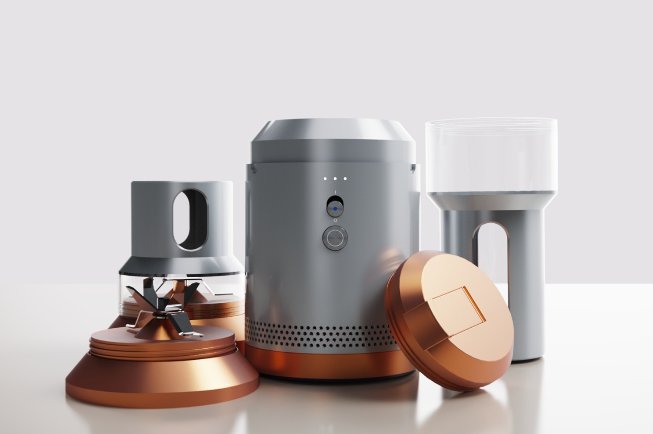 Aside from the sleek aesthetics, you get key functional elements, at least on paper and in renders. It has things like a liquid level window, lock alignment indicator, and a power switch and in keeping with their visual inspiration, they use rounded rectangles as a key element. And if you’re the type who likes seeing the blender in action, the section around the blade is transparent so you can see how it works in blending the various ingredients you put in it (or if you’re doing a “will it blend?” kind of content). There’s also a perforated mesh at the bottom so the blender gets proper ventilation and air circulation.