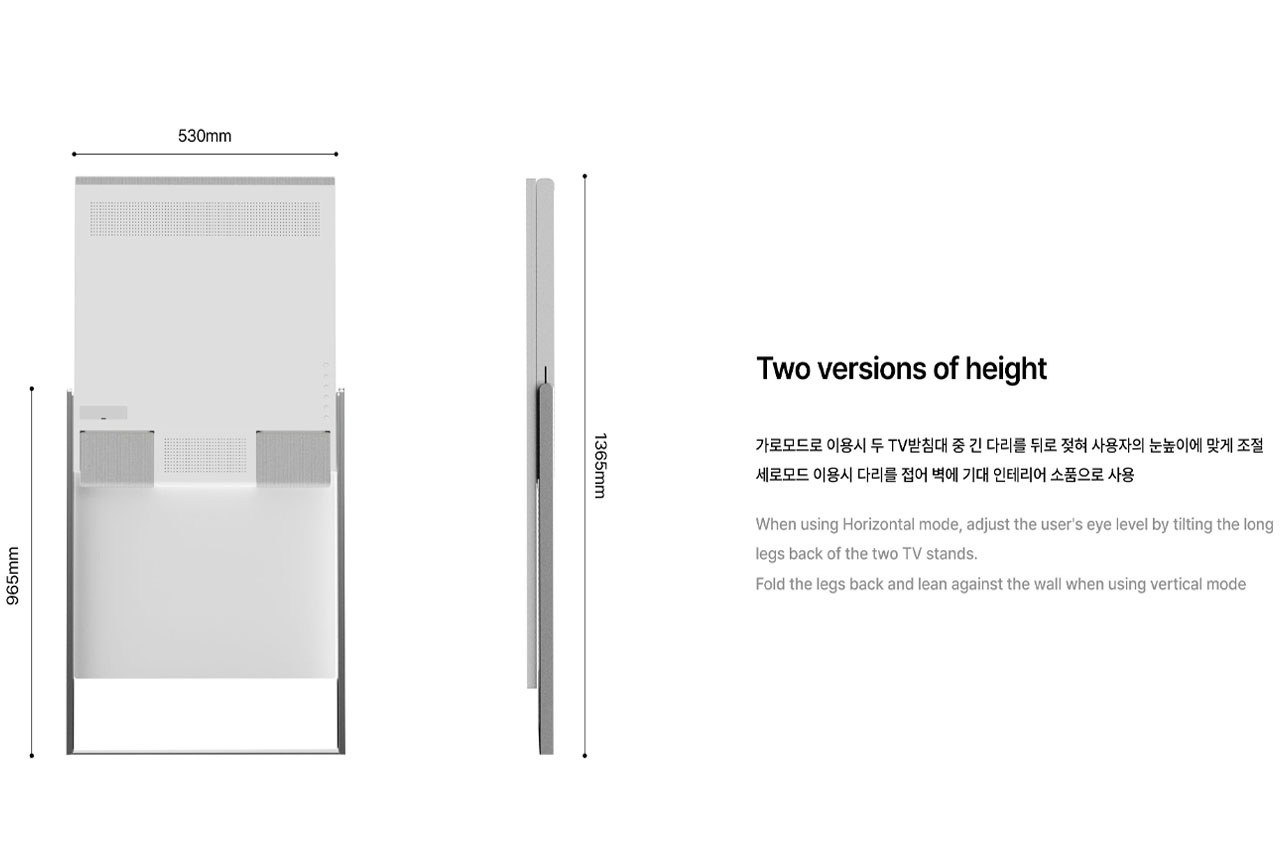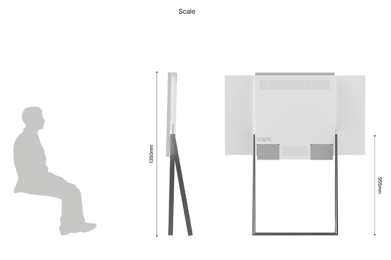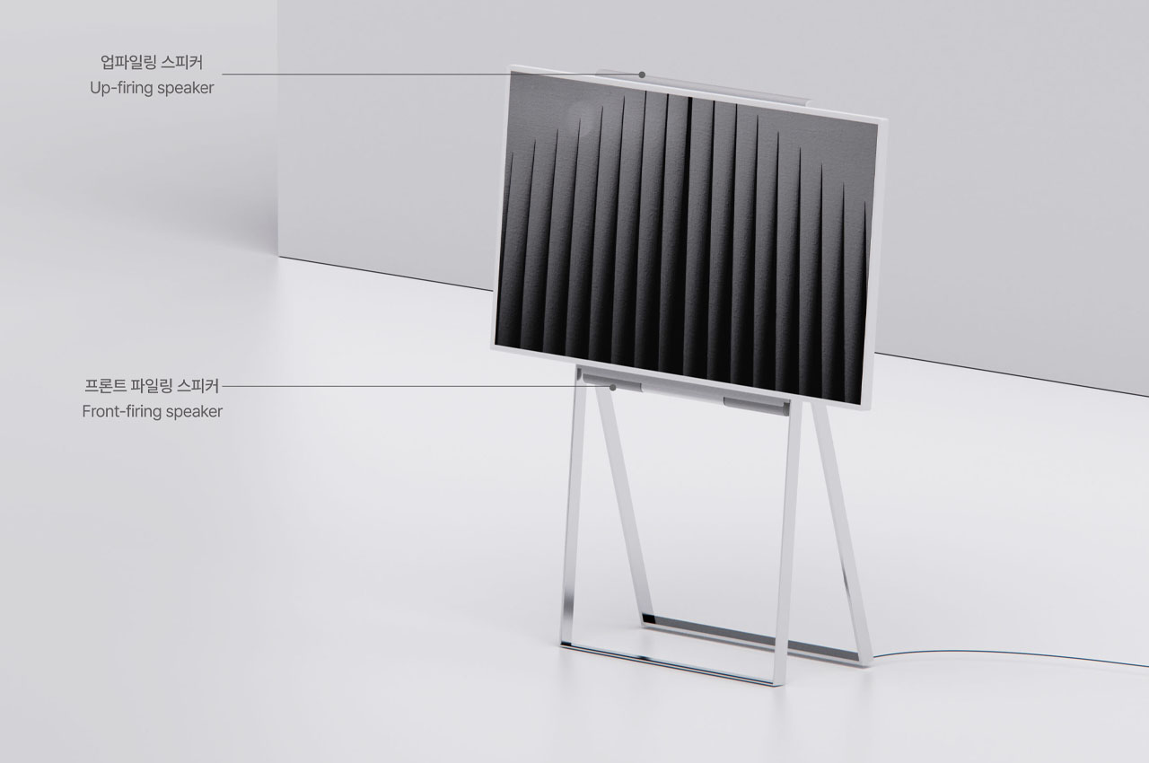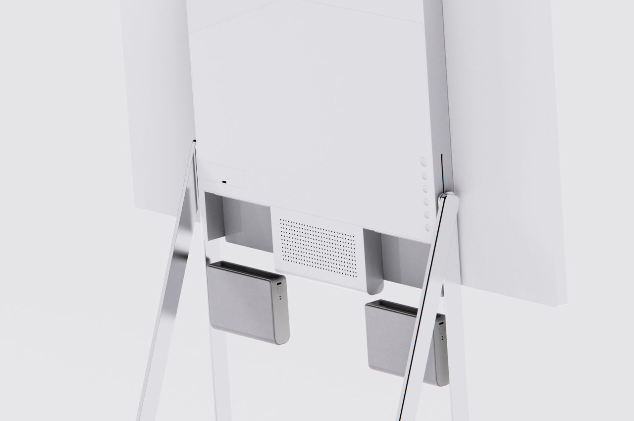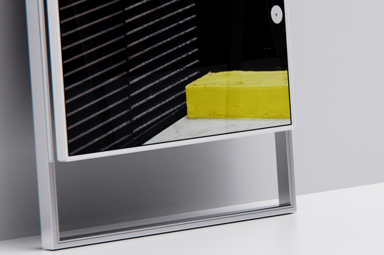 This frame-like display is designed keeping in mind the harmony of the interior space like your living room or bedroom. The outer frame houses the display that can be rotated in a horizontal or vertical orientation with the push of the button on the provided remote control. In the vertical mode, the back legs are lean against the wall while in the horizontal mode, the long legs are tilted back to adjust to adjust the user’s eye level. The detachable speakers automatically adjust to the placement position to beam 360 degrees of omnidirectional sound for multimedia viewing. When you detach them, the position of the individual speakers is automatically gauged and ambient sound is adjusted according to the sitting position of listeners.