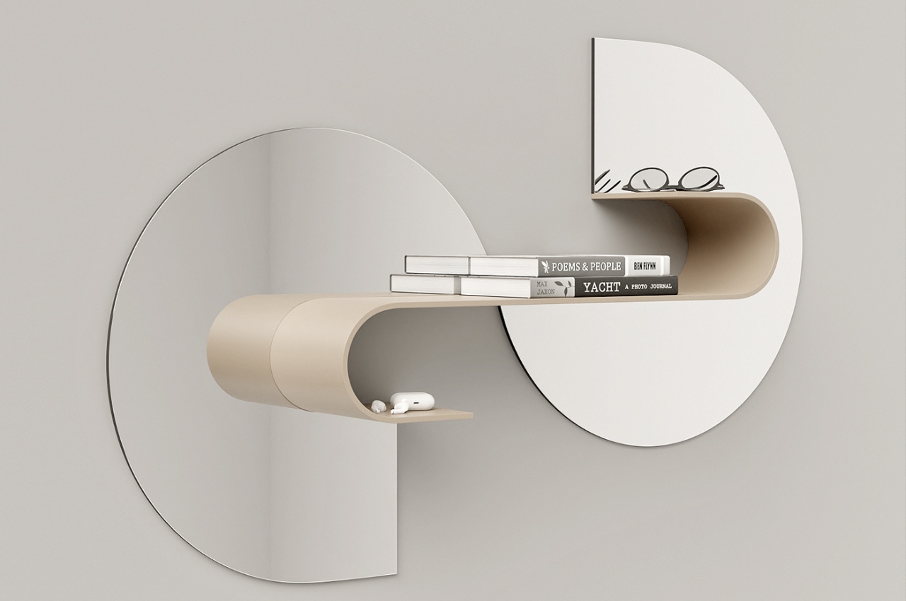 Since the concept is named Wave, the shape of the mirror and the shelves is wavy and reminiscient of the letter S. It is modular yes but no matter where you place the different parts, you’ll still get the wave. The renders show that there are around 4-5 parts that you can assemble and play around with, depending on where you want to place the shelves part or if you want it to be horizontal or vertical in orientation.