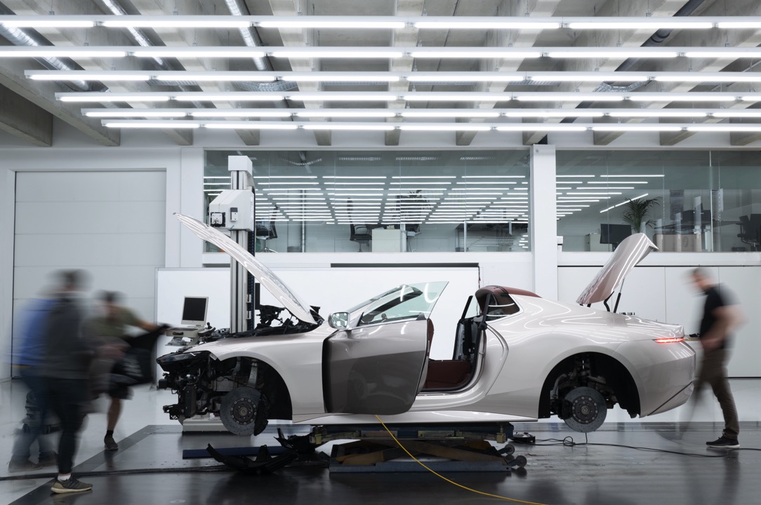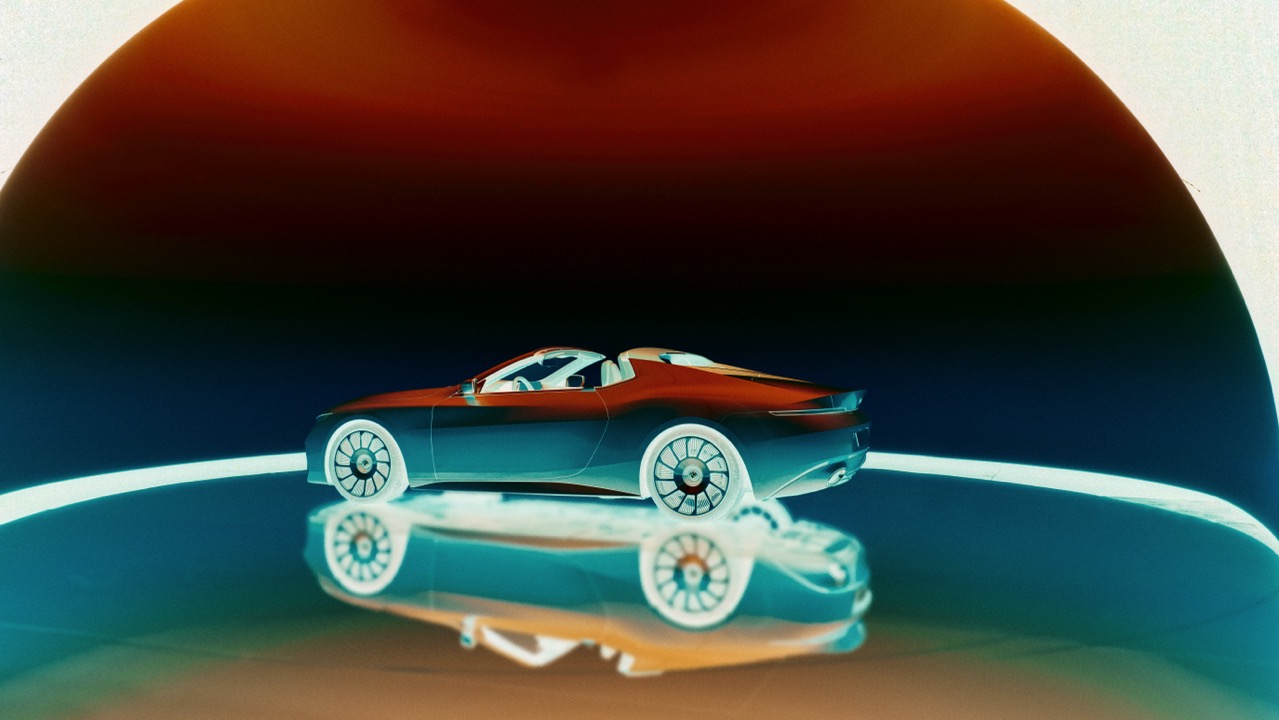 The side profile reveals an athletic and muscular form, with taut surfaces defined by precise lines that draw attention towards the rear. The absence of conventional door handles, replaced by discreet winglets integrated into the door shoulders, enhances the car’s streamlined look. With their gill-like features, the wheels add a unique touch to the car’s silhouette, further enhancing its dynamic appearance.