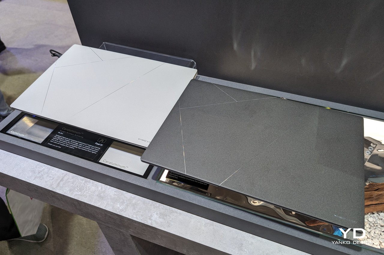 Laptop lids are often made of either plastic or metal because of their resilience and durability. Of the two, metal, which usually means aluminum, is considered more premium but also tends to be heavier and sometimes uncomfortable due to how cold it is to the touch. In contrast, ceramic is equally premium yet almost the opposite of metal: lightweight, warm to the touch, and sadly also fragile.