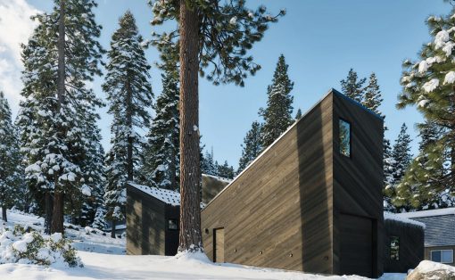 Equipped with a black metal exterior and timber accenting, the home has a stylish matte finish to it. It features a glass door that leads you to a compact living room equipped with a small sofa and a wood-burning stove. The interior of the home is quite light and spacious. Generous glazing and high ceilings add an airy vibe to the home. Tiny nooks and smart shelving help in maximizing the storage space within the home. The kitchen is positioned next to the living room, and it is pretty well-stocked. The home includes a two-burner propane-powered stove, fridge/freezer, microwave, dishwasher, a full-size electric oven as well as a sink. The kitchen also contains a seating area with stools and a breakfast bar for two. The breakfast is amped with a pull-out table area.