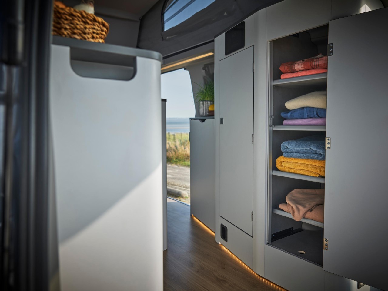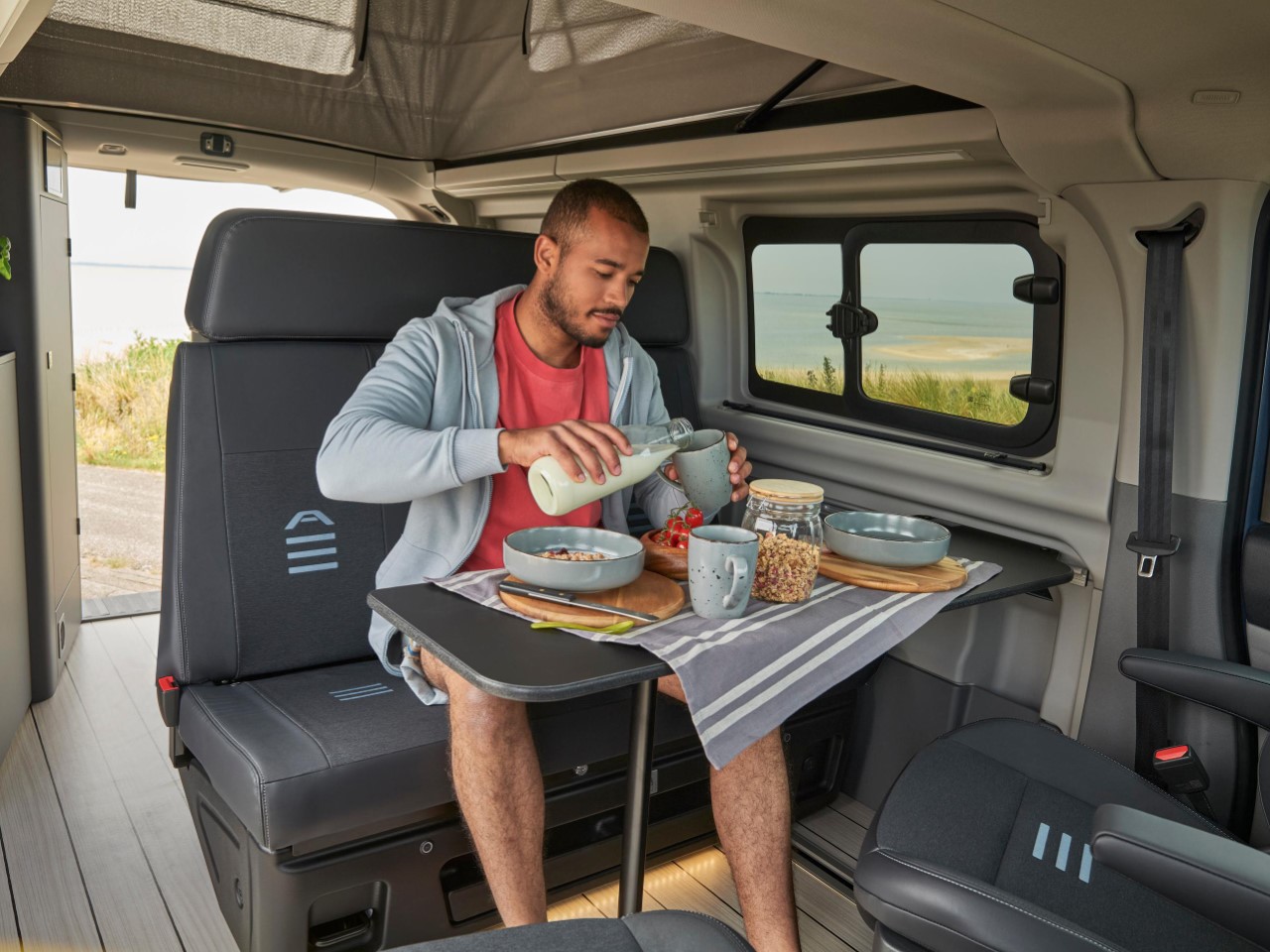 The new long-wheelbase Nugget model expands the van’s functionality by increasing its overall length from 505 to 545 cm. This added space is put to practical use, enhancing storage options with a larger wardrobe and a more expansive L-shaped kitchen. The extended countertop is ideal for those who like to prepare meals with more complexity or simply need extra room for their cooking essentials. Storage is a critical factor in the success of any camper van setup, and Ford’s design ensures that the additional space serves both convenience and comfort. The larger kitchen area is designed to house more cookware and utensils, ensuring that everything remains within easy reach while traveling.