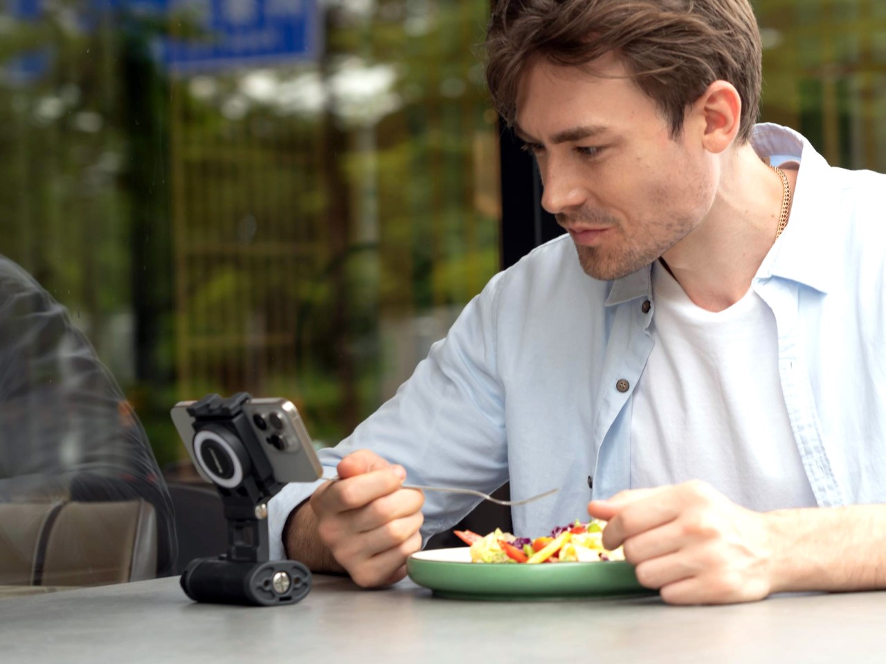 A shutter button, a built-in gimbal for landscape and portrait shooting, a zoom wheel, an integrated LED ring light, a tripod setting, and even an external battery pack to boost your phone’s battery. The Snappy offers way more for photography enthusiasts than the iPhone 16 does. It attaches onto any smartphone, giving you a bona fide DSLR-like experience, complete with an ergonomic grip. When you don’t need to shoot content, the Snappy pops right off, turning your handheld camera back into a daily driver smartphone.