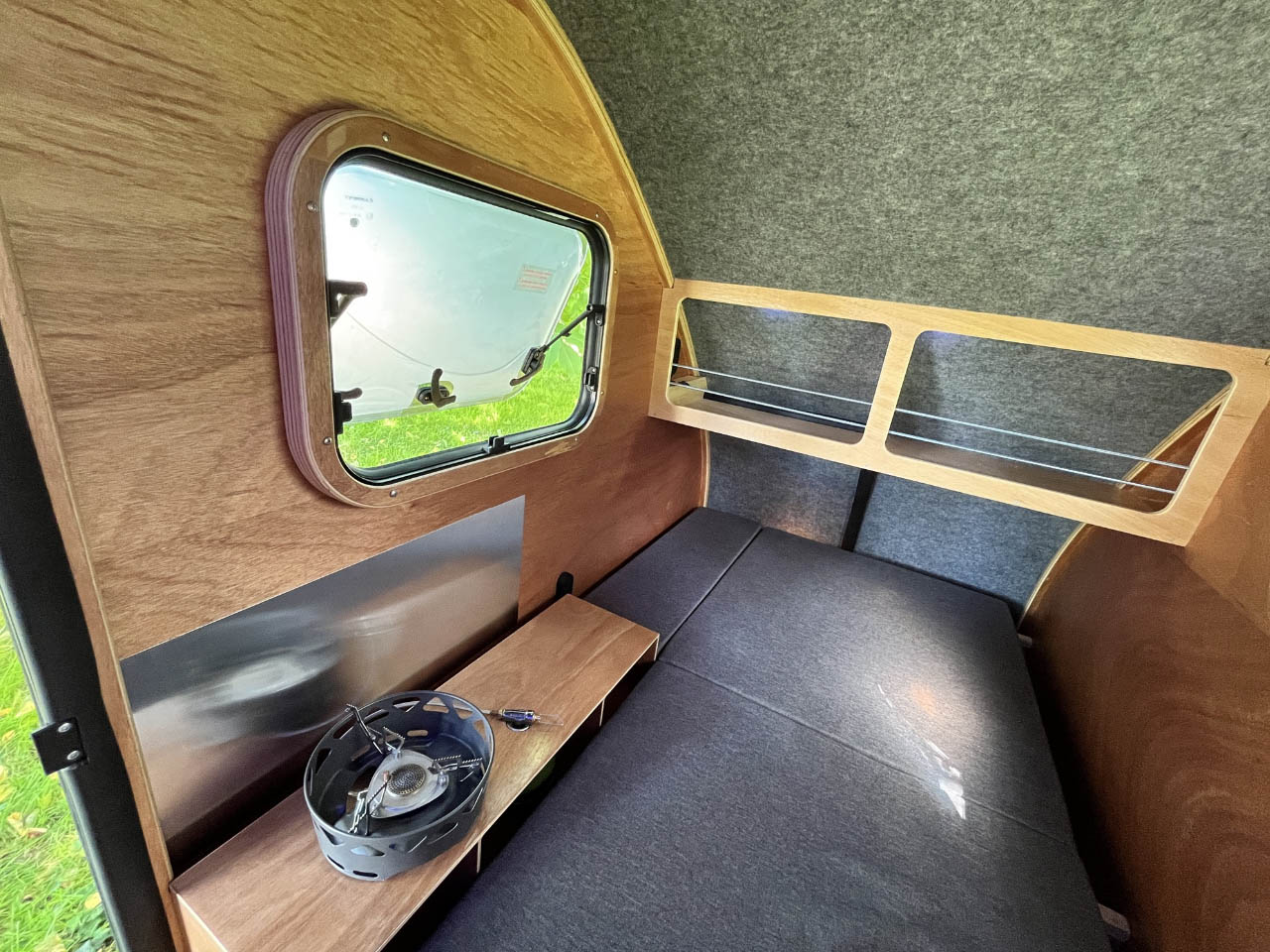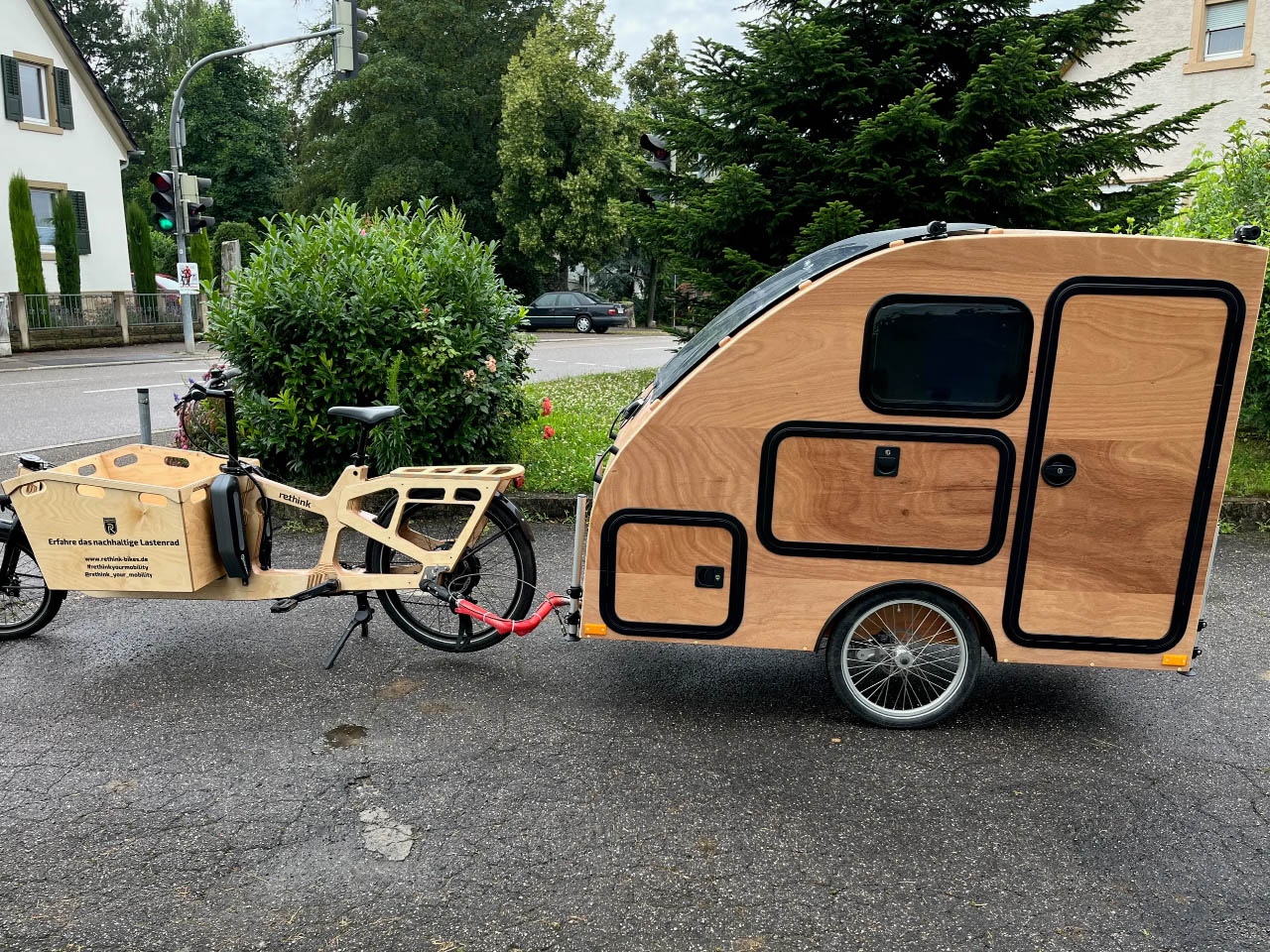 It doesn’t necessarily have a lot of space inside but does feature a single bed and bench with an adjustable backrest. The bed is finished with a polyurethane foam mattress and 360 liters of storage in it. The i:woody has an insulation system in place and the interior is well-lit with LED lighting. The power needs of this wooden bicycle caravan is taken care of by the onboard battery pack though users have the option of ordering it with solar panels on the roof.