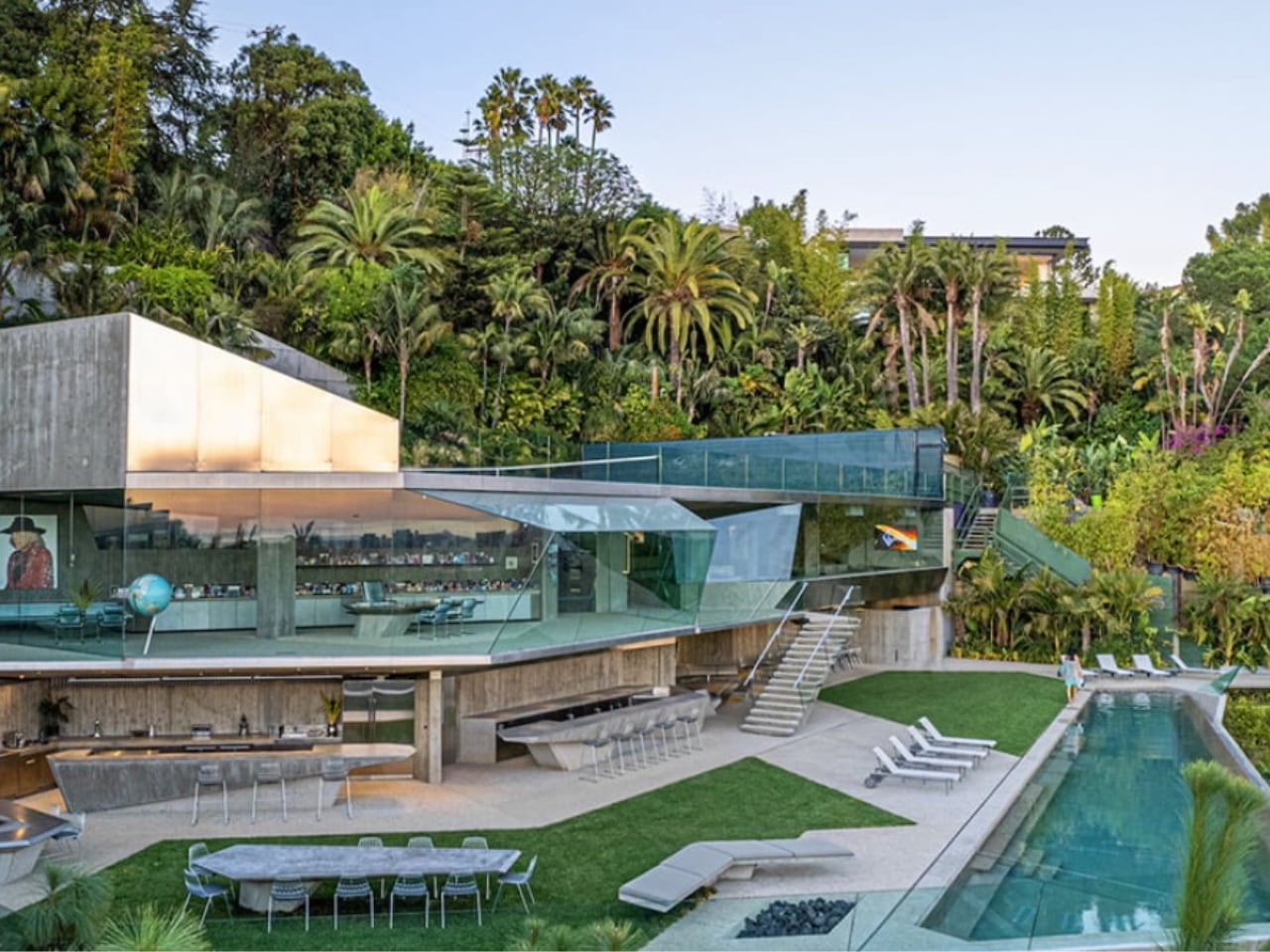 The Sheats-Goldstein Residence is not frozen in time; it continues to grow and change. One of the most recent projects includes the Goldstein Entertainment Complex—an addition that includes a nightclub and entertainment spaces that complement the original design without compromising it. Designed to align with Lautner’s original approach, these new elements add functionality while staying true to the home’s aesthetic vision. The property also includes unique features like a tennis court, a James Turrell Skyspace installation, and plans for a guest house that is currently in development. The grounds, now spanning over 1.5 hectares, are a testament to careful curation—hidden walkways snake through lush vegetation, reflecting ponds create moments of calm, and the Skyspace adds an element of quiet reflection that enhances the overall experience of the property.