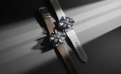 The clean lines and the smooth finish of the cases – of both the watch and the clock – are instant enticers, but the charm lies in their dials. The center of the dial is minimalist, it features four strokes marking the 12, 3, 6, and 9 o’clock positions. This unembellished center amplifies the retro aesthetic while the timepieces scale up to modernism high with a labyrinth-style periphery of the center.