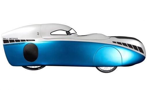 The trike can reach up to 190 kilometers per hour, and up to 500 kilometers on a single charge. The velomobile-style electric trike doesn’t include a steering wheel but is equipped with a pair of joysticks on the side of the pilot to steer the vehicle in drive mode. The rider can easily shift pedals to save power and charge the battery.