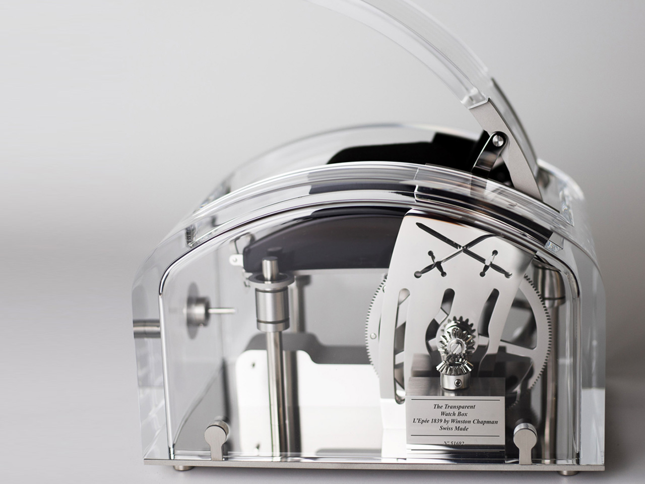 Introducing the L’Epée transparent watch box – which is nothing more than what the name suggests precisely. But for some integrity, it has mechanical functioning to become an enticing presentation box. Meant excessively to offer a full view of the watch beating under its hood, the translucent box mechanically elevates your precious timepiece to wear or simply impress your friends.