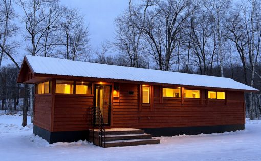 Dubbed the Mo.2 675 Highline, this tiny home was designed by UK-based Mooble House and employs a thoughtfully planned strategy for downsizing. Measuring a compact 22 feet, the home is built on a double-axle trailer. It features a single-story design with a flexible layout that allows the bed to be stored within a wall. The exterior is a blend of wood and metal with a metal roof, while the interior is arranged on one level for easy flow.