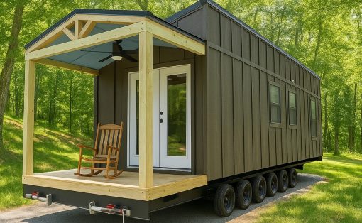 In the bathroom area of each building, a sleek rectangular bathtub is strategically positioned next to expansive floor-to-ceiling windows. These windows are a signature feature in all the cottages, offering unobstructed views of the surrounding landscape and allowing natural light to flood the space, creating a serene and immersive bathing experience.