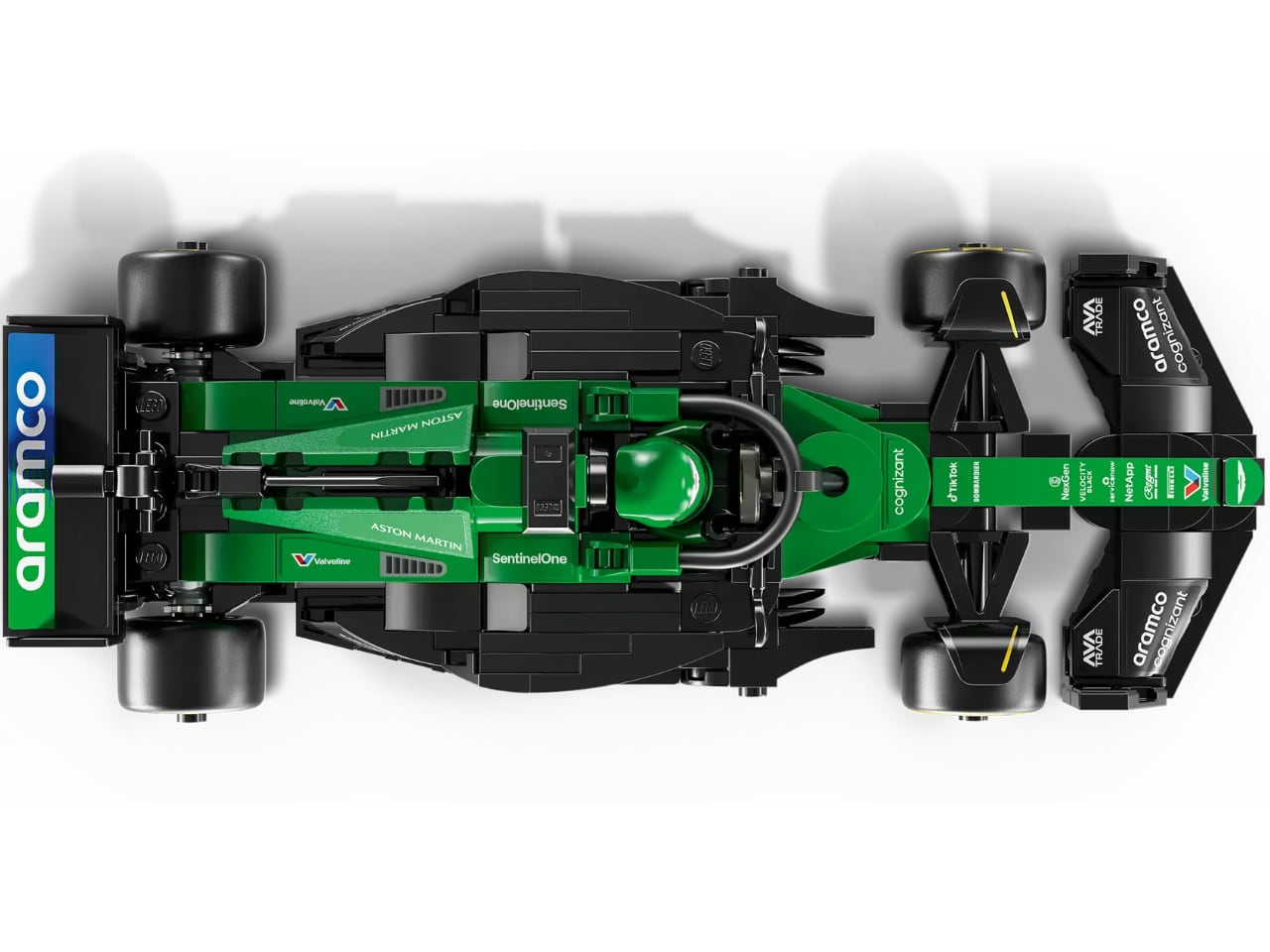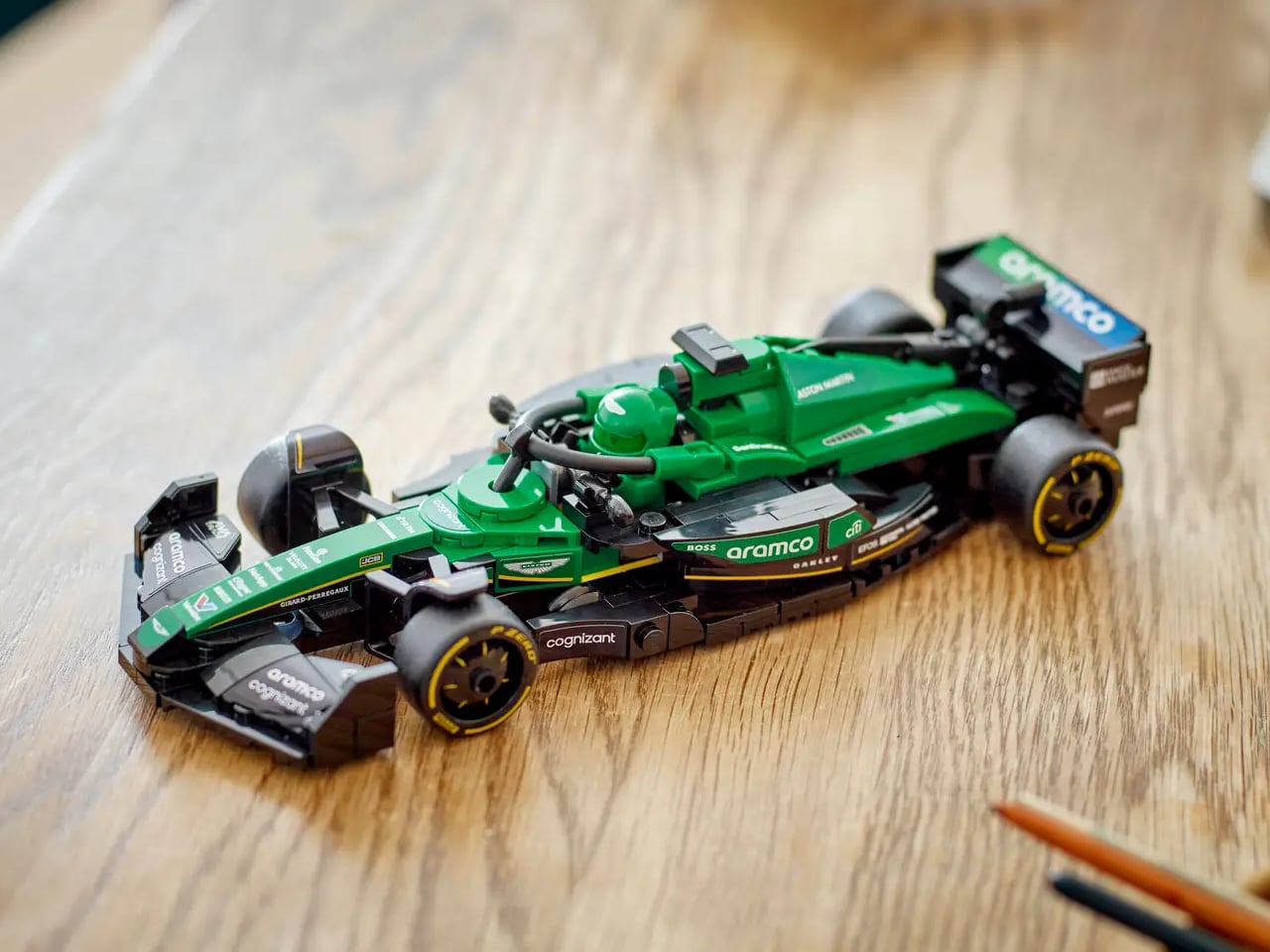Special Features: The included driver minifigure wears a detailed green racing suit with yellow accents and a printed helmet featuring the team’s wing motif. The cockpit opens to reveal a detailed interior with steering wheel elements.