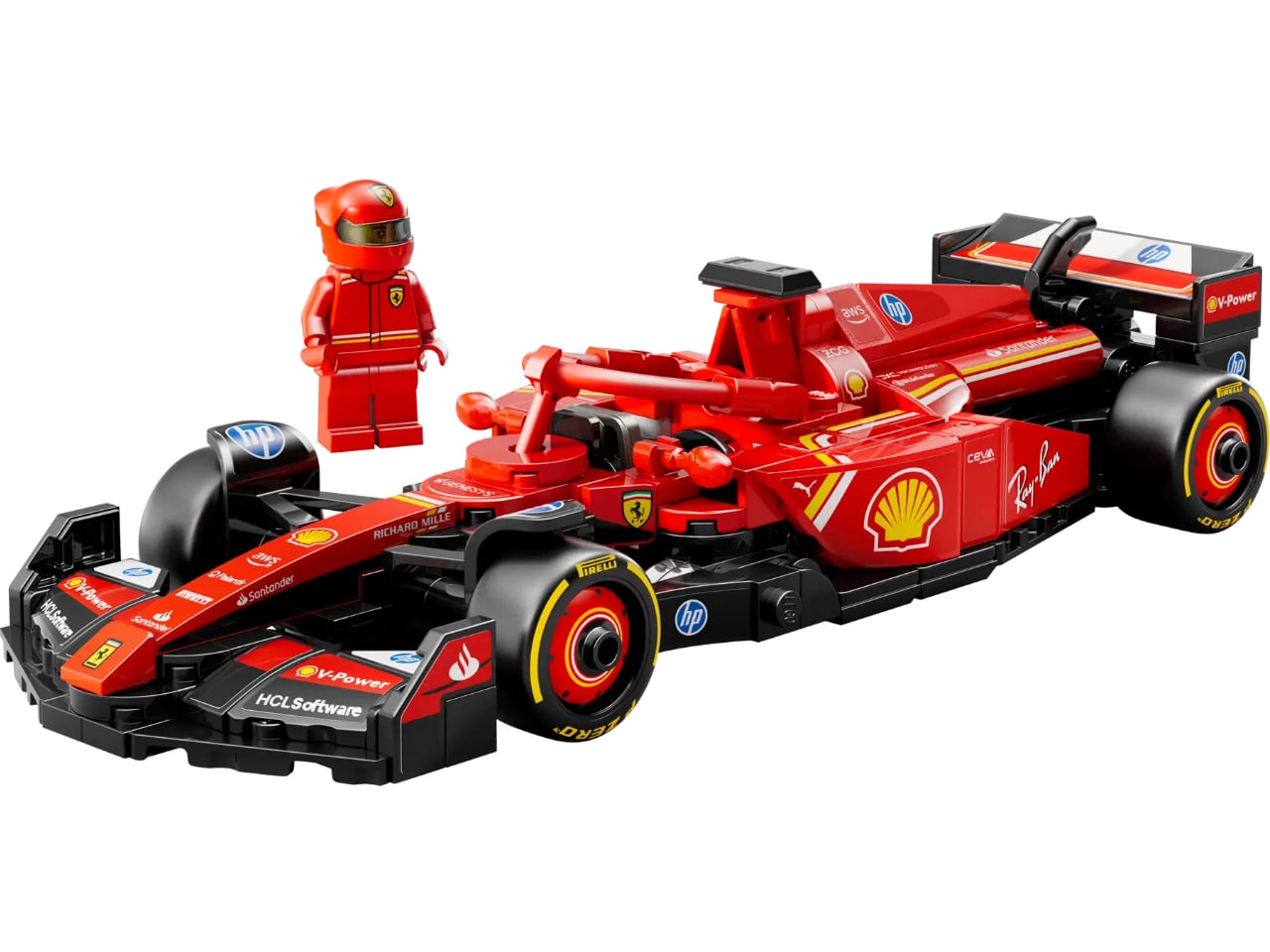 Special Features: The included Ferrari driver minifigure comes in the team’s signature red racing attire. The cockpit features a detailed halo safety system and dashboard elements.
