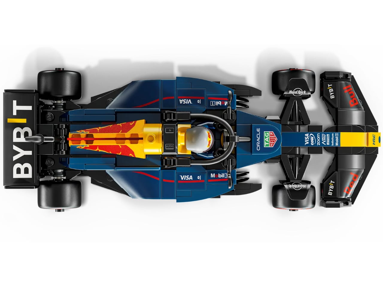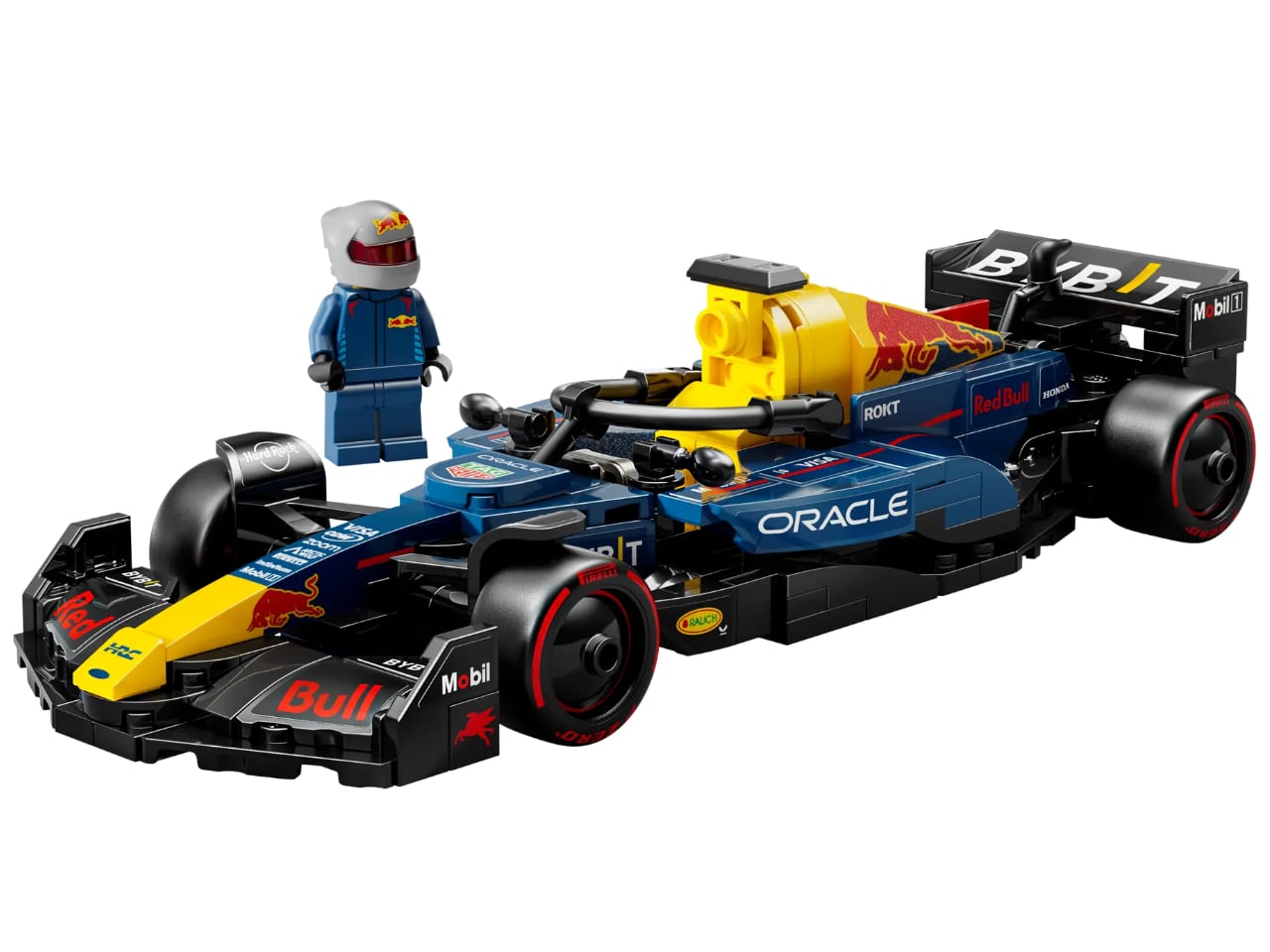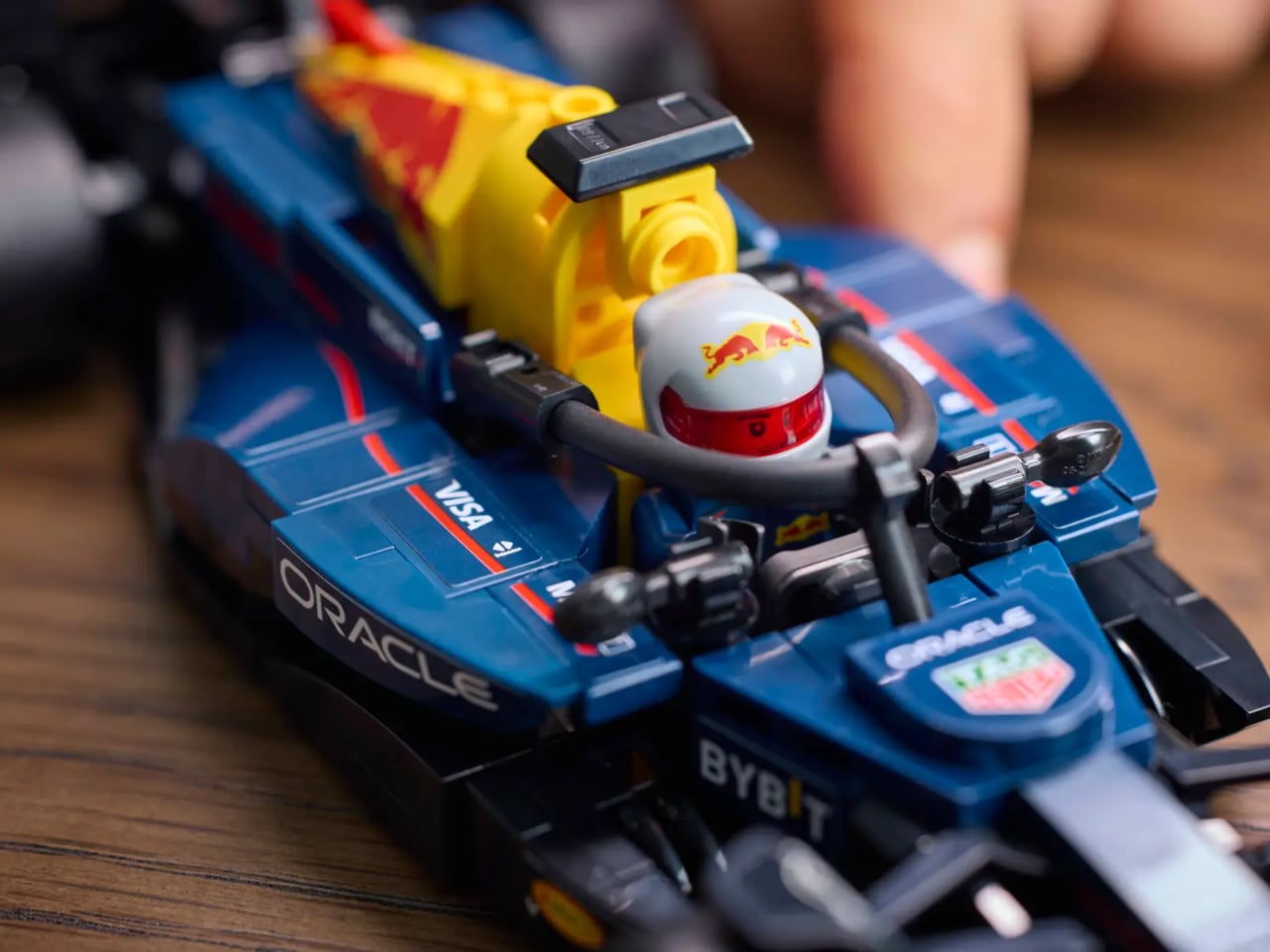 Special Features: The Red Bull driver minifigure sports a navy-blue suit with yellow stripes and a distinctive helmet design. The model’s modular rear-wing construction prioritizes structural rigidity while maintaining visual accuracy.