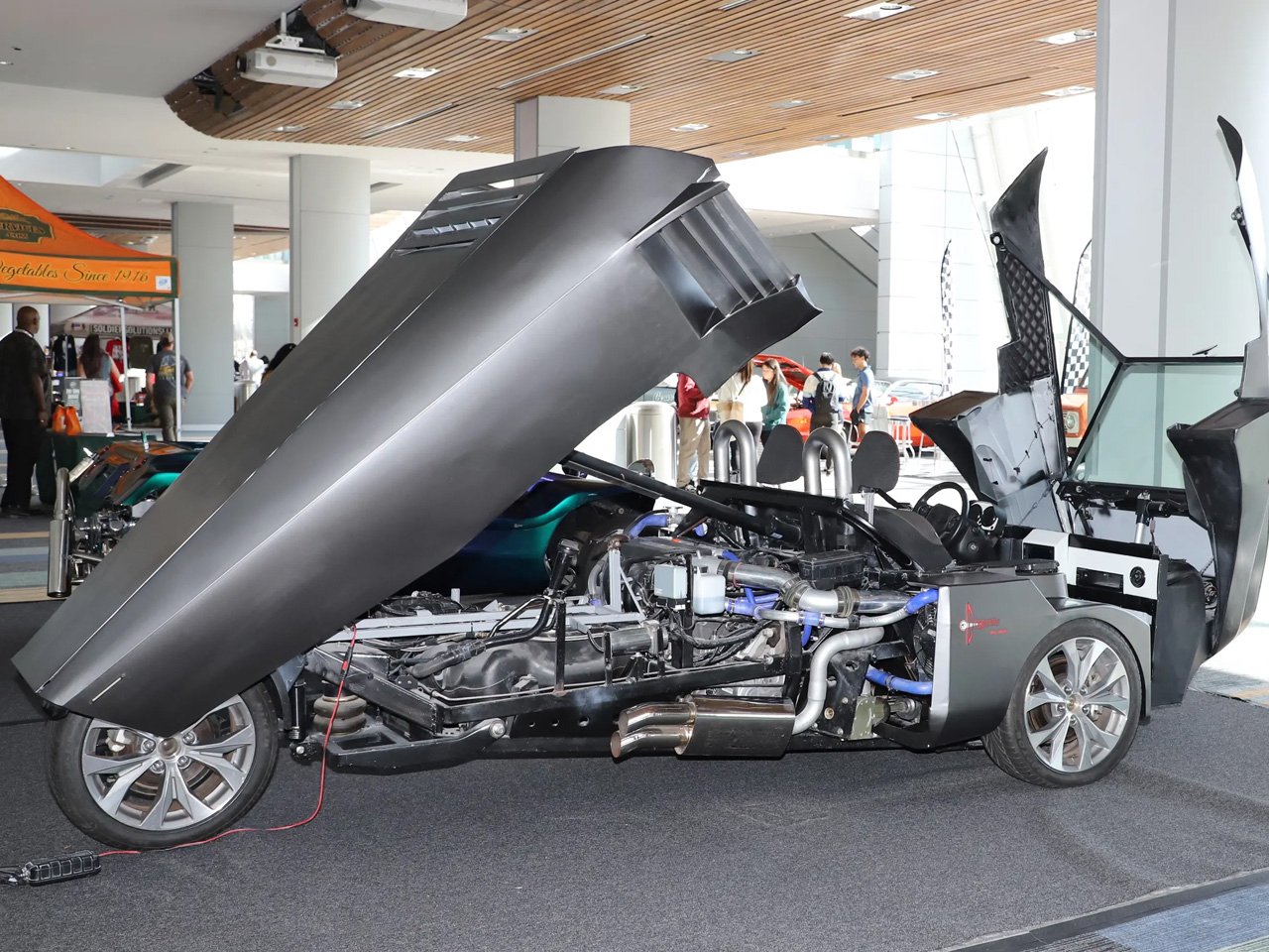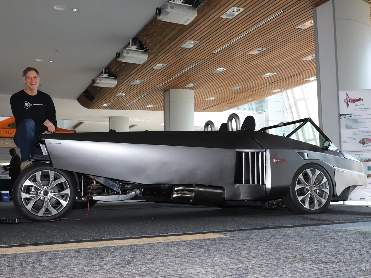 Powered by a 200-hp, 2.4-liter DOHC gas engine, the Dragonfly uses a five-speed manual transmission to optimize traction. It comes equipped with an 8-point roll bar, a removable roof, and a canopy design that lifts for easy entry into the trike. The vehicle also boasts a self-leveling air suspension system and power steering for comfort. The Dragonfly’s aerodynamic shape ensures more efficiency, with plans for a more compact and electric version for future urban use.
