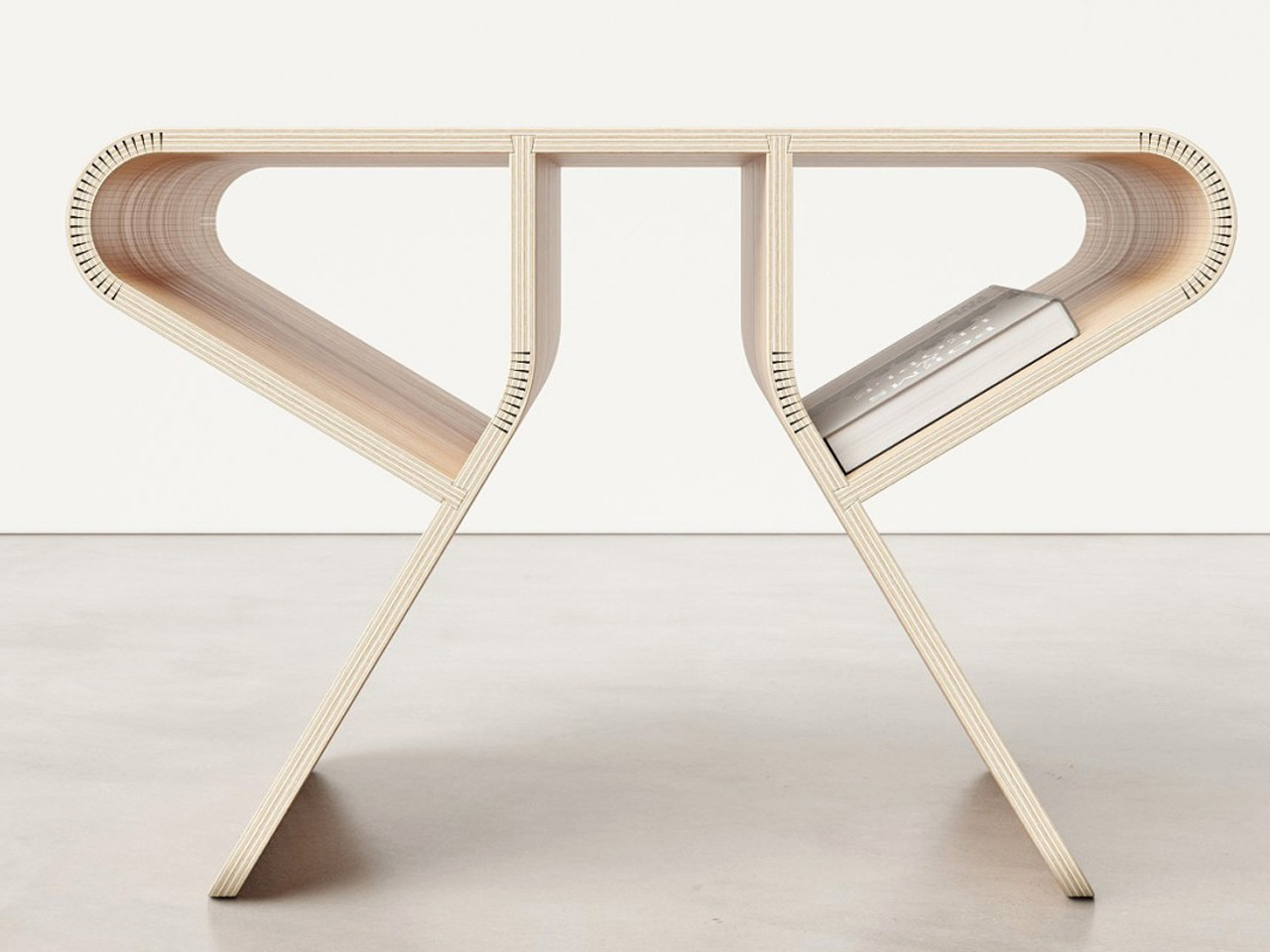 The KURVE furniture collection is a minimalist’s paradise, combining sleek aesthetics with enhanced functionality. This collection utilizes curved forms to create practical storage solutions within its designs. It features a throne-like chair and a couch, both crafted from a single sheet of layered wood. The KURVE Chair stands out with a curved, backless box base that includes a hollow nook for convenient item storage.