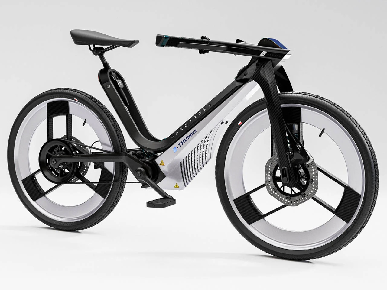 The E-THUNDER electric bike is a versatile and performance-focused e-bike designed for city commuting and weekend mountain adventures. With its aggressive, sharp design and large wheels, it combines a modern aesthetic with functionality. The frame and high saddle evoke the sleek profile of a Stealth bomber, while the bike’s high-grade suspension and wide tires ensure a smooth ride, even on steep inclines or rough trails. Tailored for urban commuting during the week, the E-THUNDER is also equipped for intense lower-body workouts in the hills. Riders can adjust the handlebars for added comfort, and the bike’s forward-leaning riding position minimizes drag at high speeds.
