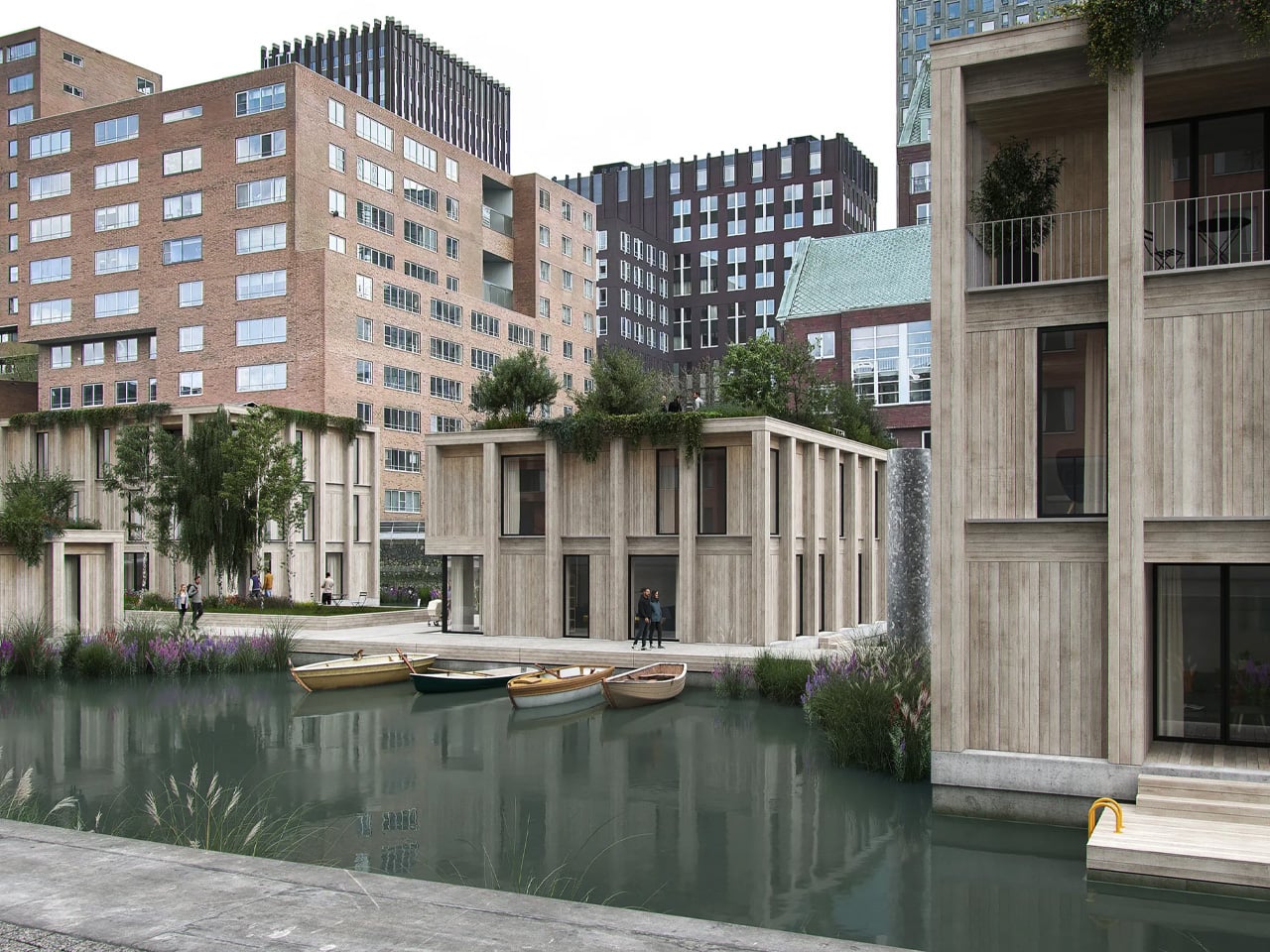 The sense of community is gently woven into every aspect of the development. Shared green spaces and walkways become informal meeting points, while the continuous blue ribbon of navigable water invites both residents and visitors to experience the city from an entirely new vantage. The architecture does not impose, but rather settles in lightly and thoughtfully, making space for both human and non-human life.