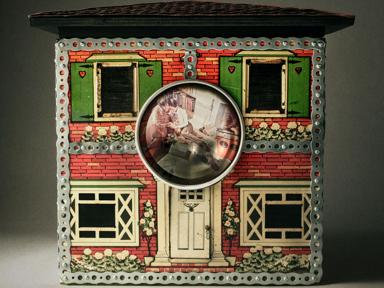 The structures themselves (salvaged 1930s pressed-metal toys) are no longer playsets but sonic vessels. Each house is rewired, reupholstered, and reanimated to represent different domestic or communal settings: a chapel, a living room, an ice cream parlor, or a corner shop. Rather than being static objects, they’re functional speakers, each one broadcasting ambient compositions tailored to its theme. One might emit the murmur of a congregation, another the distant chime of a store bell, all composed to match the atmosphere of these tiny vignettes.
