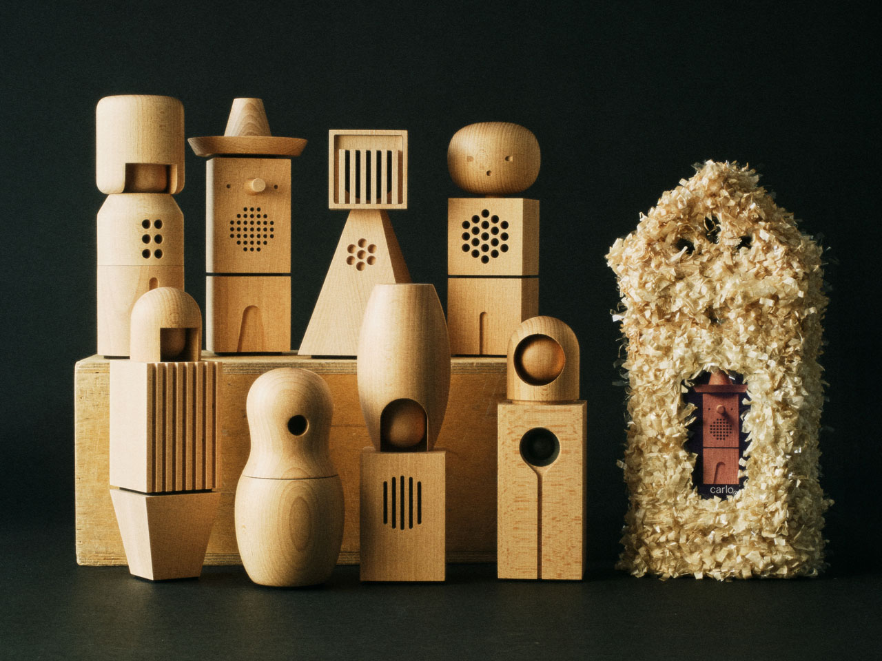 The team behind Bentgablenits, Brenda Bent, Karen Gable, and Angelo Nitsopoulos, conceived the concept while pondering a home for the speaker. The idea of housing it within an actual house quickly turned literal, and then wonderfully surreal. Working closely with Teenage Engineering, the team found surprising alignment in their differing approaches: one driven by tactile imperfection, the other by technological precision. Yet both, as they note, “pour their hearts into the products.”