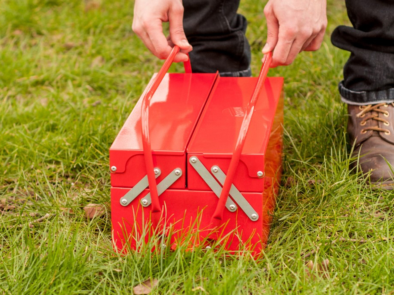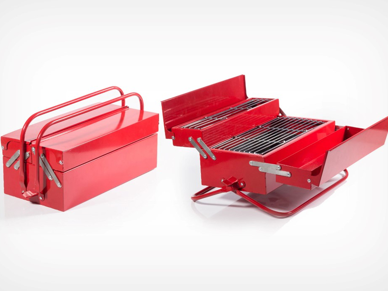 Combining the spirit of DIY with the joy of outdoor cooking, the BBQ Toolbox by SuckUK is a clever, portable grill disguised as a classic metal toolkit. Crafted entirely from durable steel and coated in heat-resistant red paint, this compact unit unfolds to reveal a fully functional barbecue setup ideal for alfresco meals. It features an 8×15” main grilling area that is suitable for serving up to four people and a secondary warming rack to keep buns or cooked items ready to serve.
