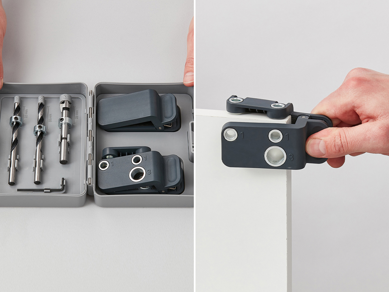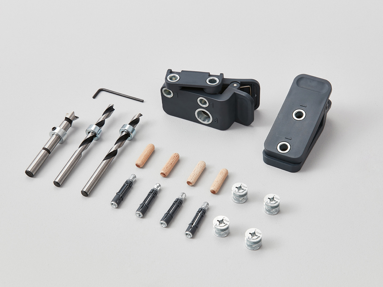 Each jig is tailored for a specific function—for example, the Shelf Jig features a T-shaped design with numbered holes that match drill bits, ensuring precise alignment for hardware fittings. With spring-loaded construction aids and step-by-step instructions, Cam & Dowel Jig makes woodworking more accessible, even for beginners.