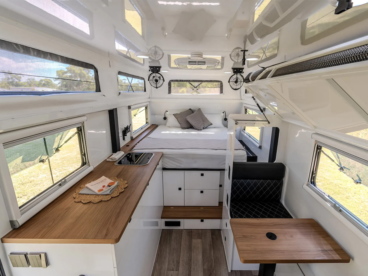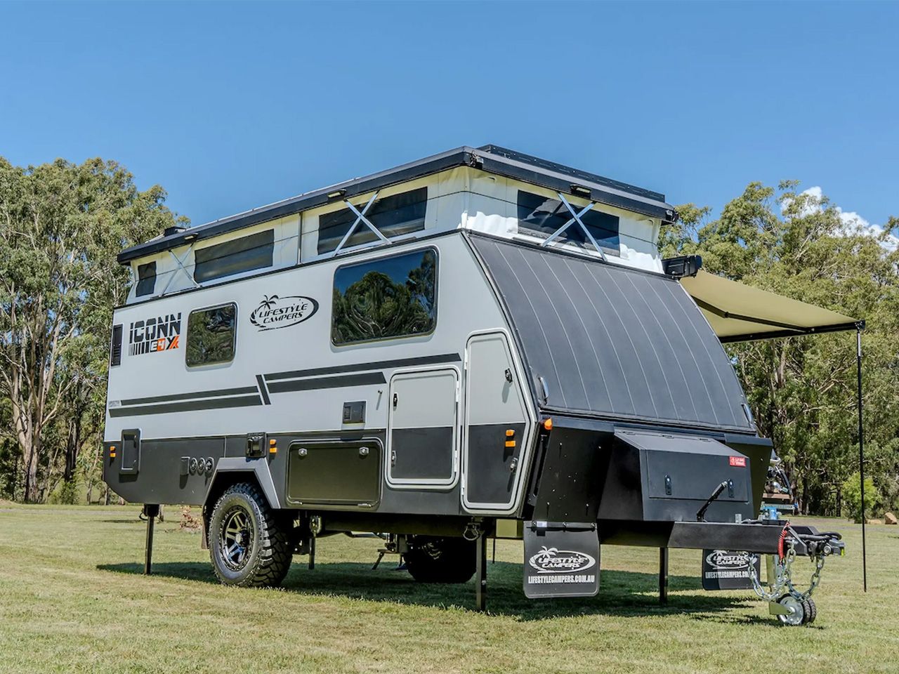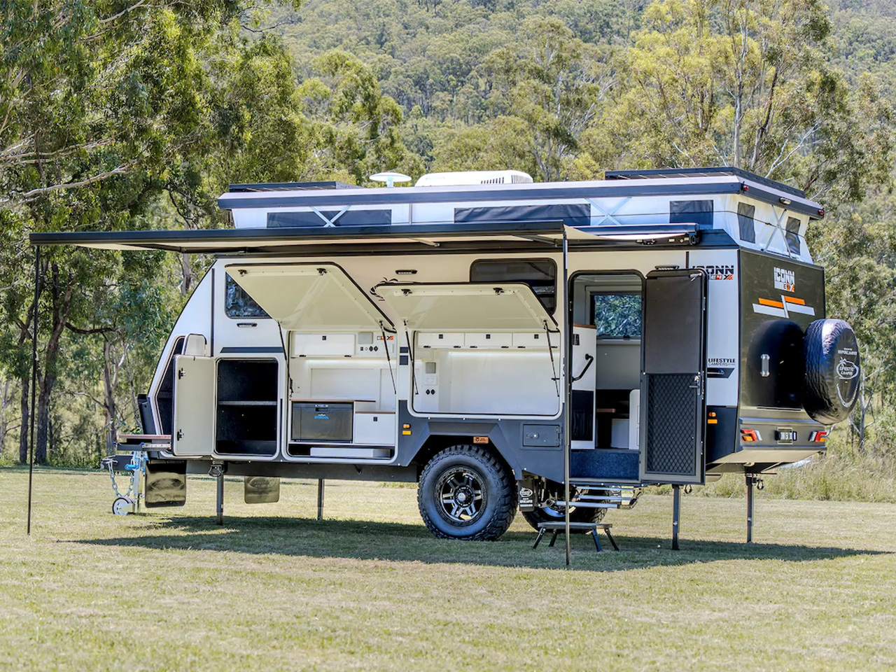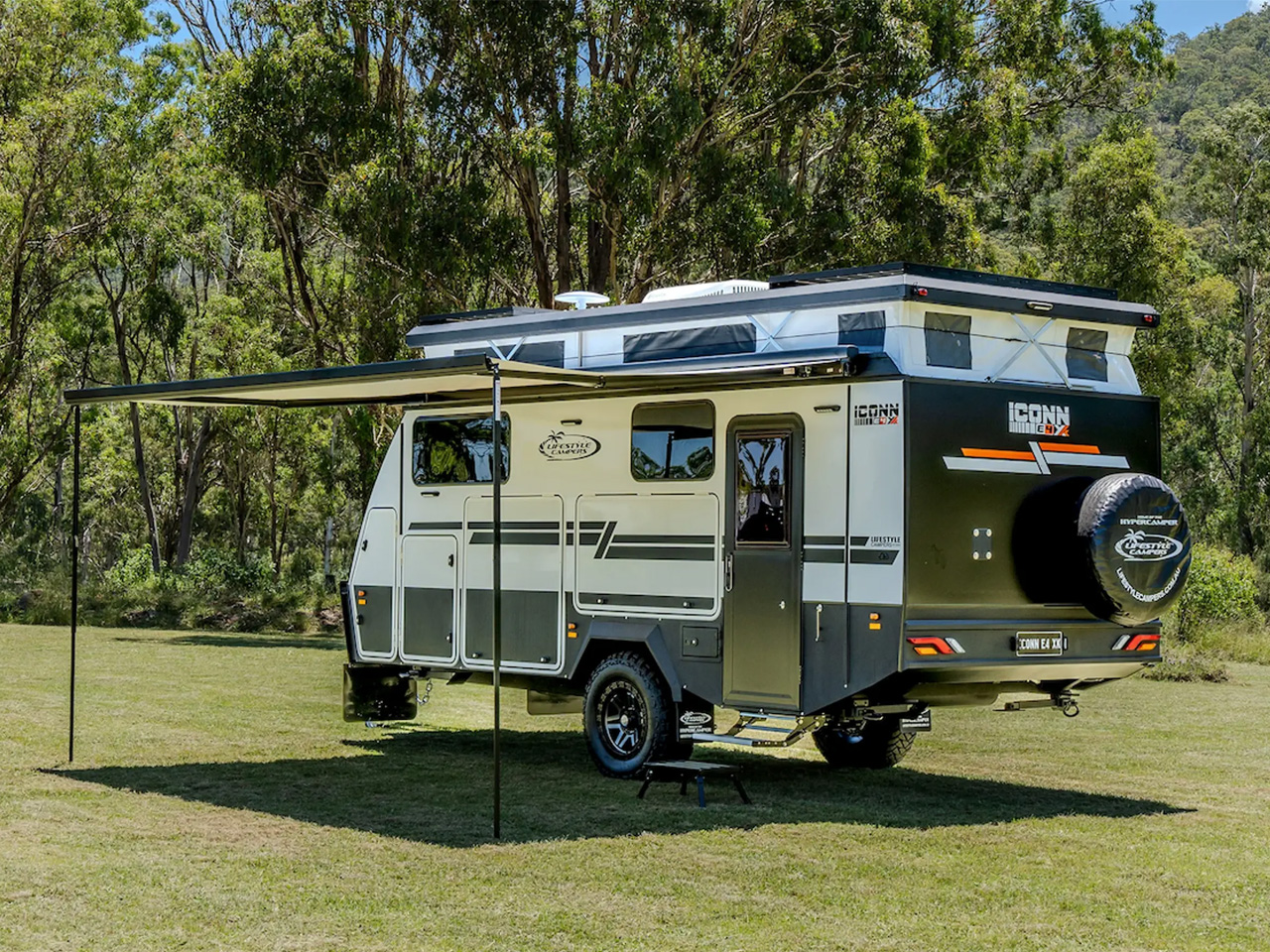 Dubbed the “ultimate Hypercamper for adventurers who refuse to compromise,” the Iconn E4 XK features a galvanized steel chassis, a Cruisemaster ATX Stage 3 airbag suspension system, along with 33-in off-road tires. Along with being apt to take on all types of terrains, Lifestyle has ensured that its trailer is off-grid ready with a 350W rooftop solar system, 300Ah lithium battery, and a 3,000W inverter taking care of the power needs and an onboard 240L fresh water tank catering to the water needs of the fancy kitchen and a functional bathroom.