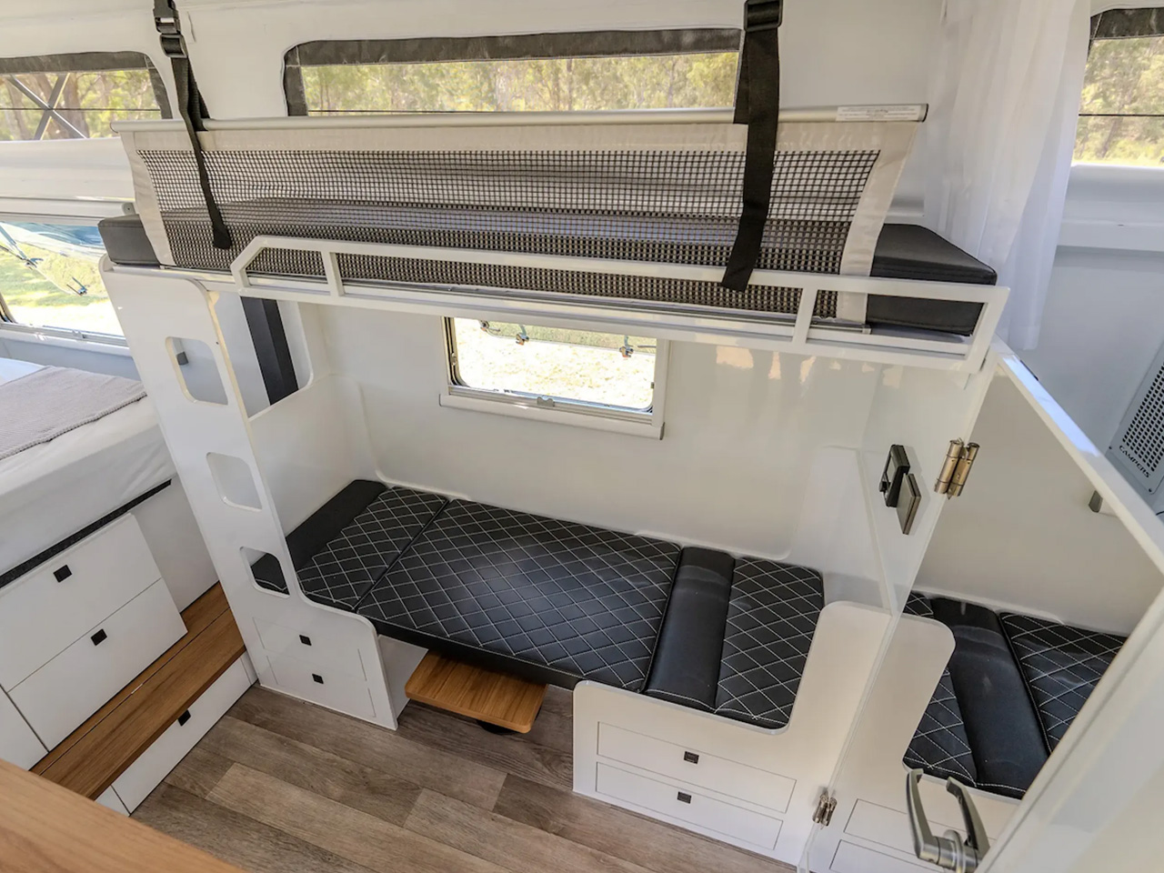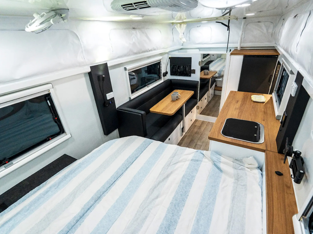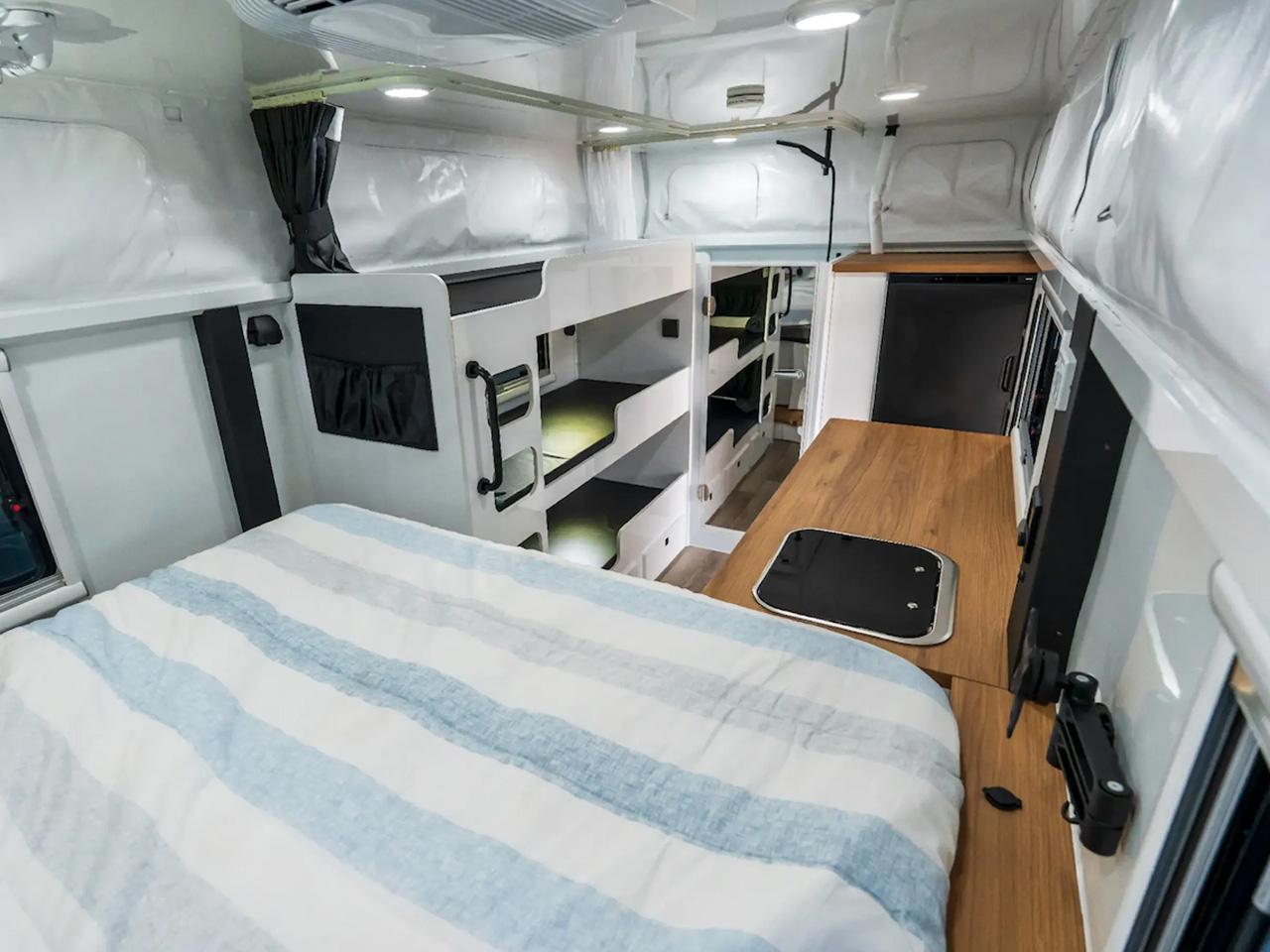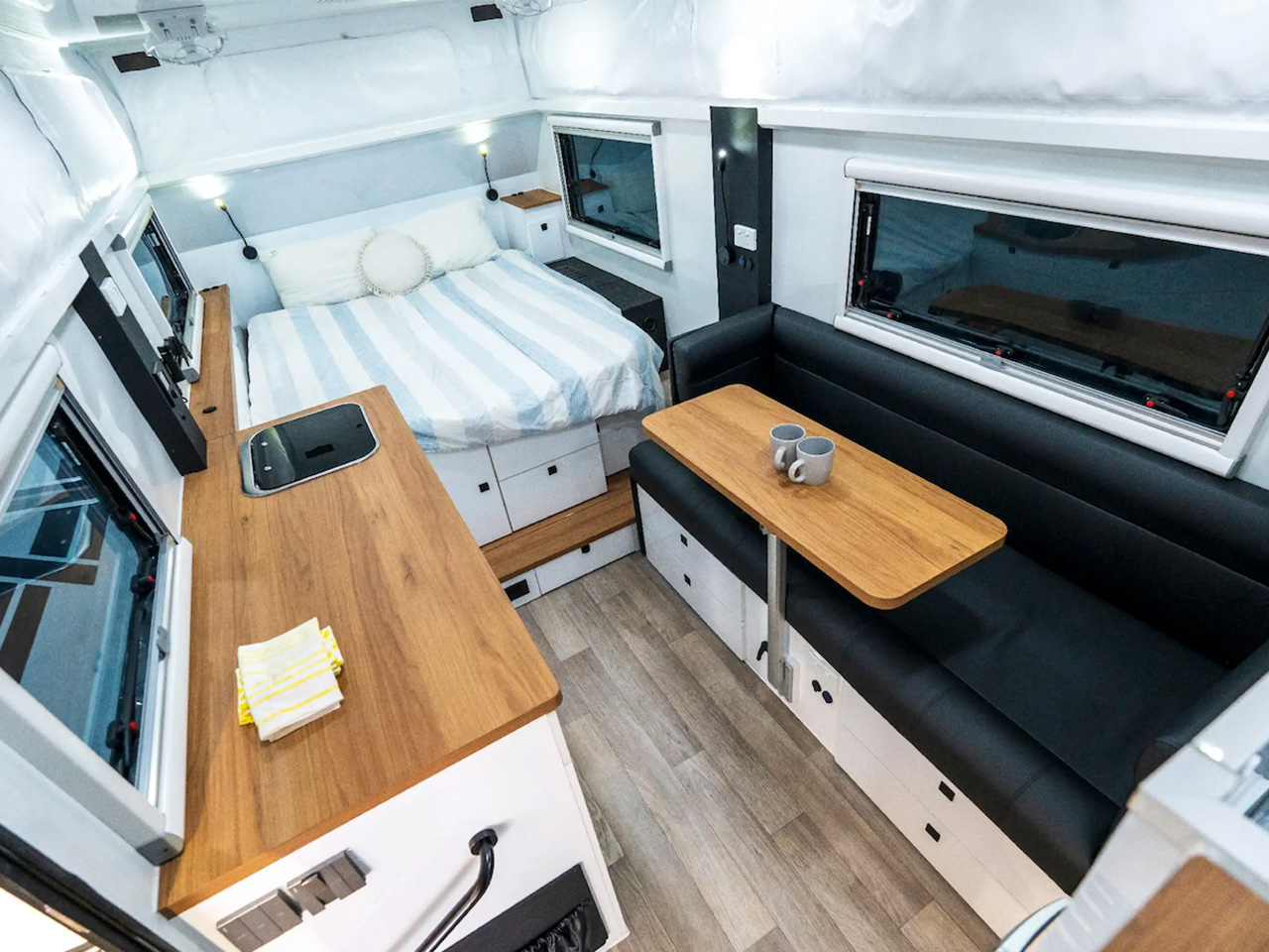 Like the utilitarian kitchen, the bathroom is not as spacious, but it does have room for a toilet and a shower. What really makes the Iconn E4 XK stand out is the sleeping layout. In addition to the main queen bed up front, which is accompanied by a nightstand and reading lamp, Lifestyle allows users to complete the layout to their choice of sleeper. Opposite the kitchen, the users can choose a dinette/lounge cum bed layout for three, or a dinette with bunk bed layout, if four people are onboard. When a facility for five is required, one can choose the triple bunk bed layout. It is also provided in a compact 22.6-foot layout starting at AU$87,950. In America, the Iconn E4 XK is expected to start at about $77,000 mark.