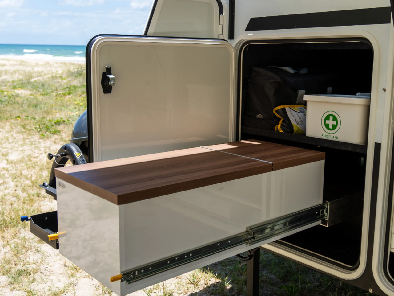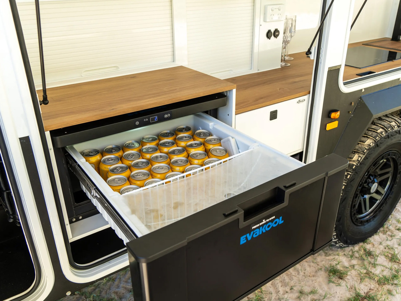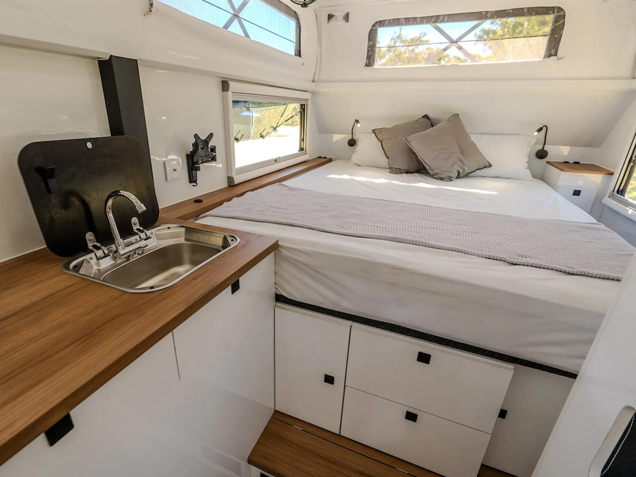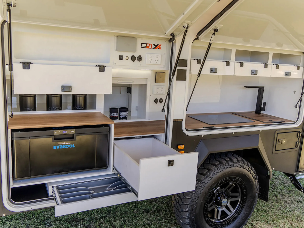 Before we proceed into the details, the images you’ll see and the features we will list are from the model touring the Australian wilderness. The variant of the Iconn E4 XK that makes it through to the U.S. via Lifestyle Campers’ American distributor XGrid Campers, may vary from the company with the American norms. However, that is, the camping trailer will continue to have a spacious kitchen and a sleeping facility for up to five people, along with its off-grid and off-roading abilities.