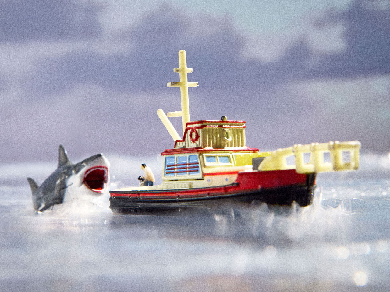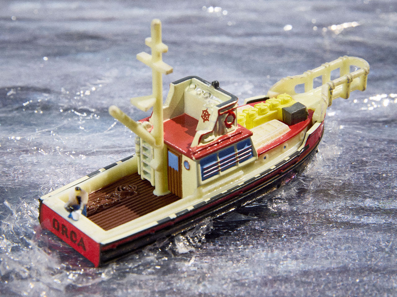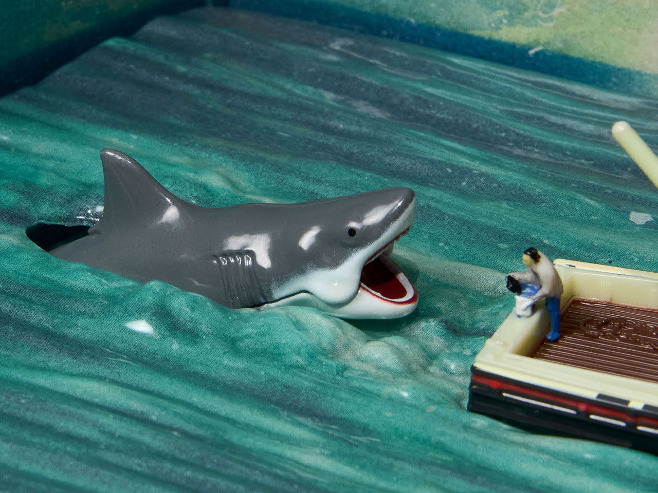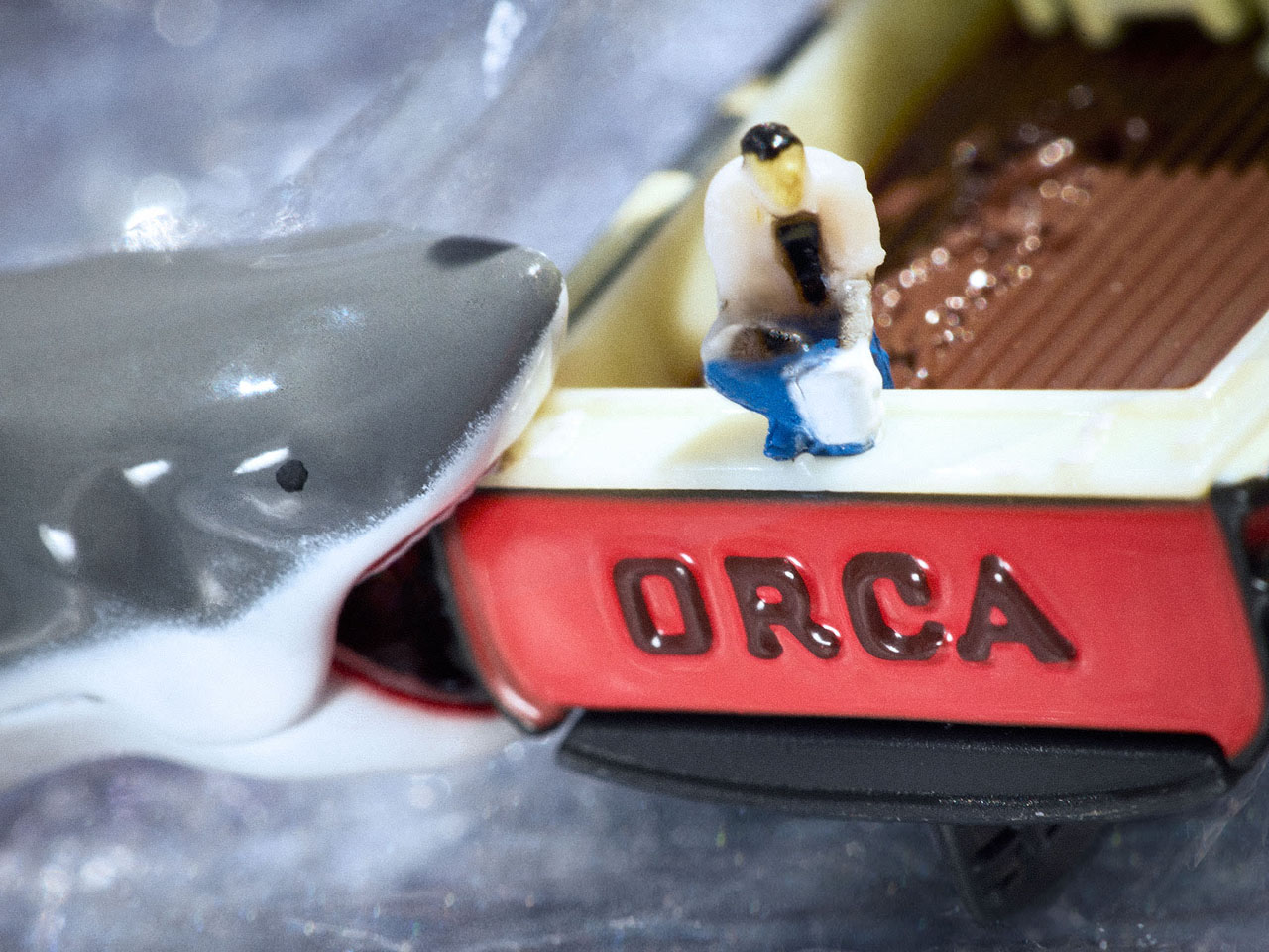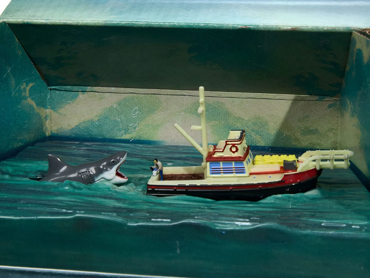 The other limited edition set themed on the 1975 Jaws movie depicts the deadly shark chasing Captain Quint’s vulnerable Orca boat. Again, this is a 1:64 die-cast set that relives the nostalgic memories of the blockbuster movie when it rocked theaters back in the good old times. The boat has a weathered look, emulating the one featured in the movie, and a miniature version of the Chief Brody on the back, as he puts chum in the water. The scene is incomplete without the shark, so Mattel created a die-cast shark attacking the boat in all its raging fury.