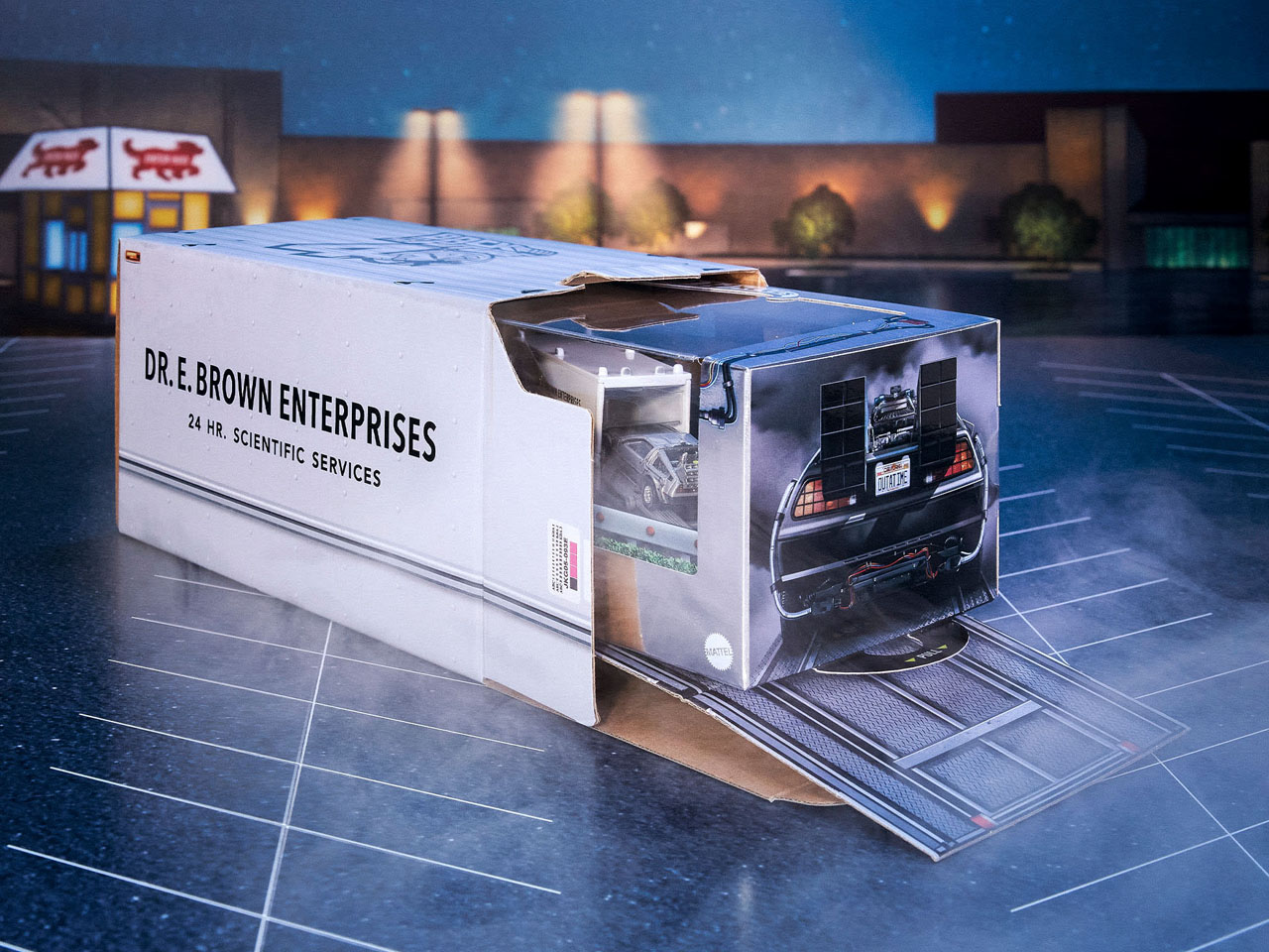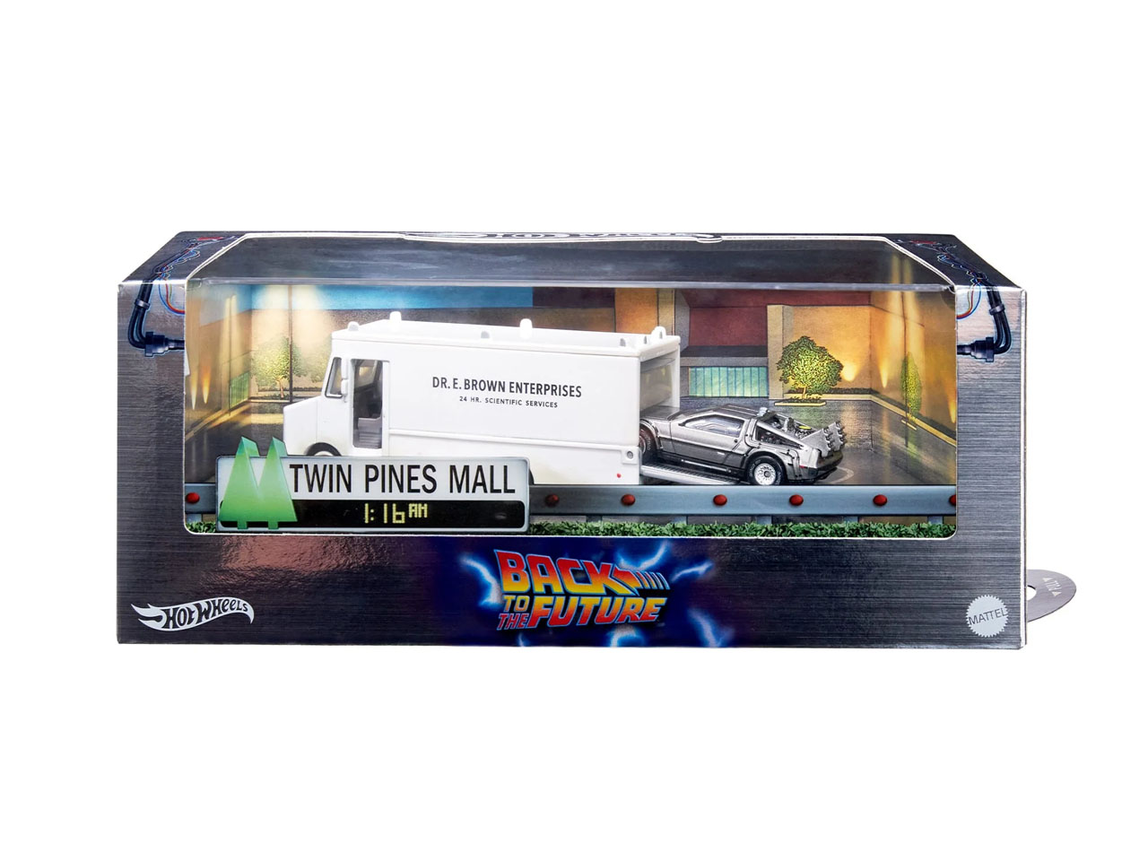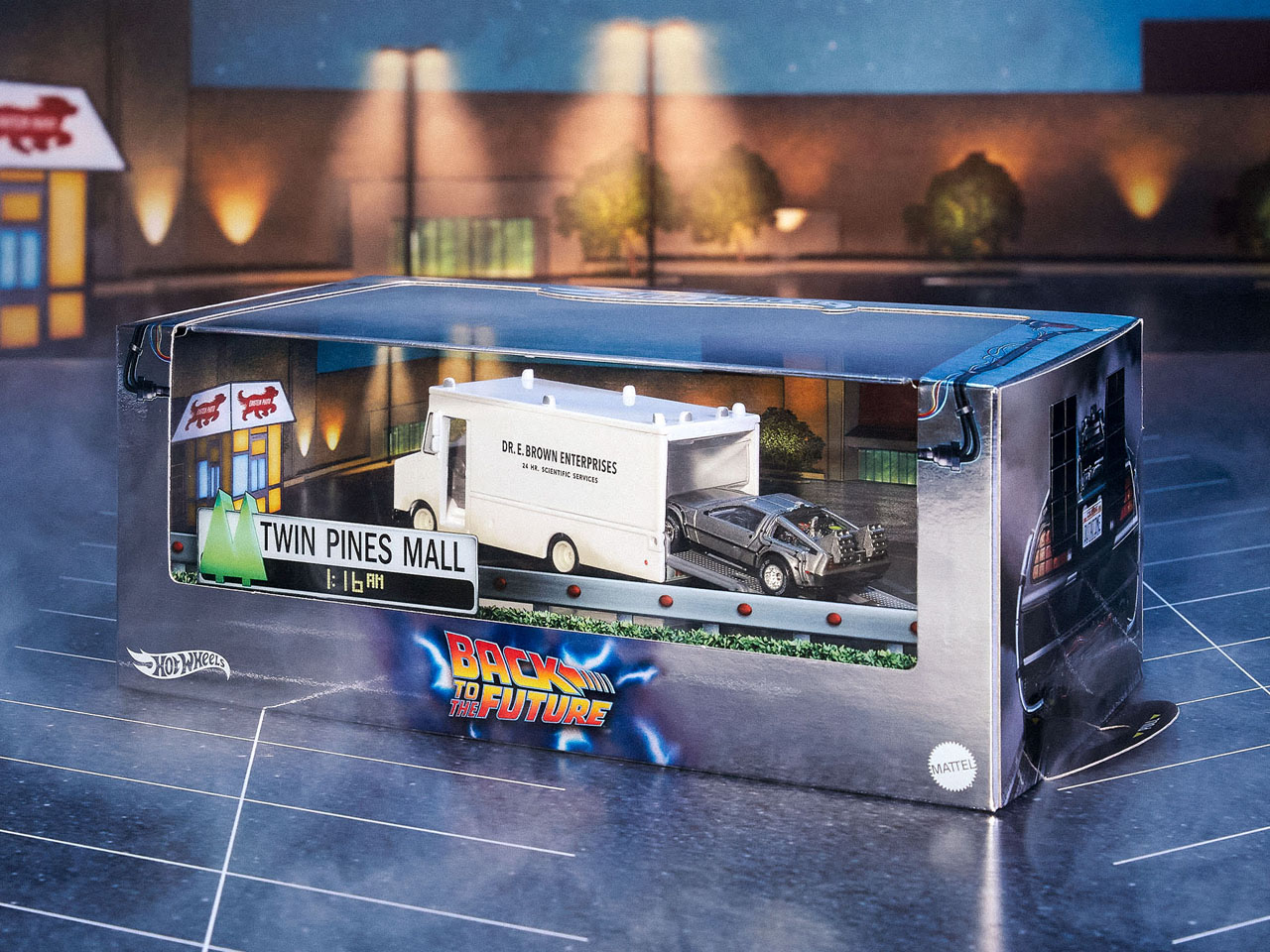 The Hot Wheels Back to the Future Time Machine set brings back memories of the iconic scenes from the first movie, released on 3 July 1985, where the Doc’s GMC Value Van (with true-to-life graphics) and the Time Machine are revealed. This set depicts the outer box for unfolding the ramp from the side so that the user can slide the 1:64 diorama from the side. This apparently is the first ever temporal displacement set, making it special in its own right.