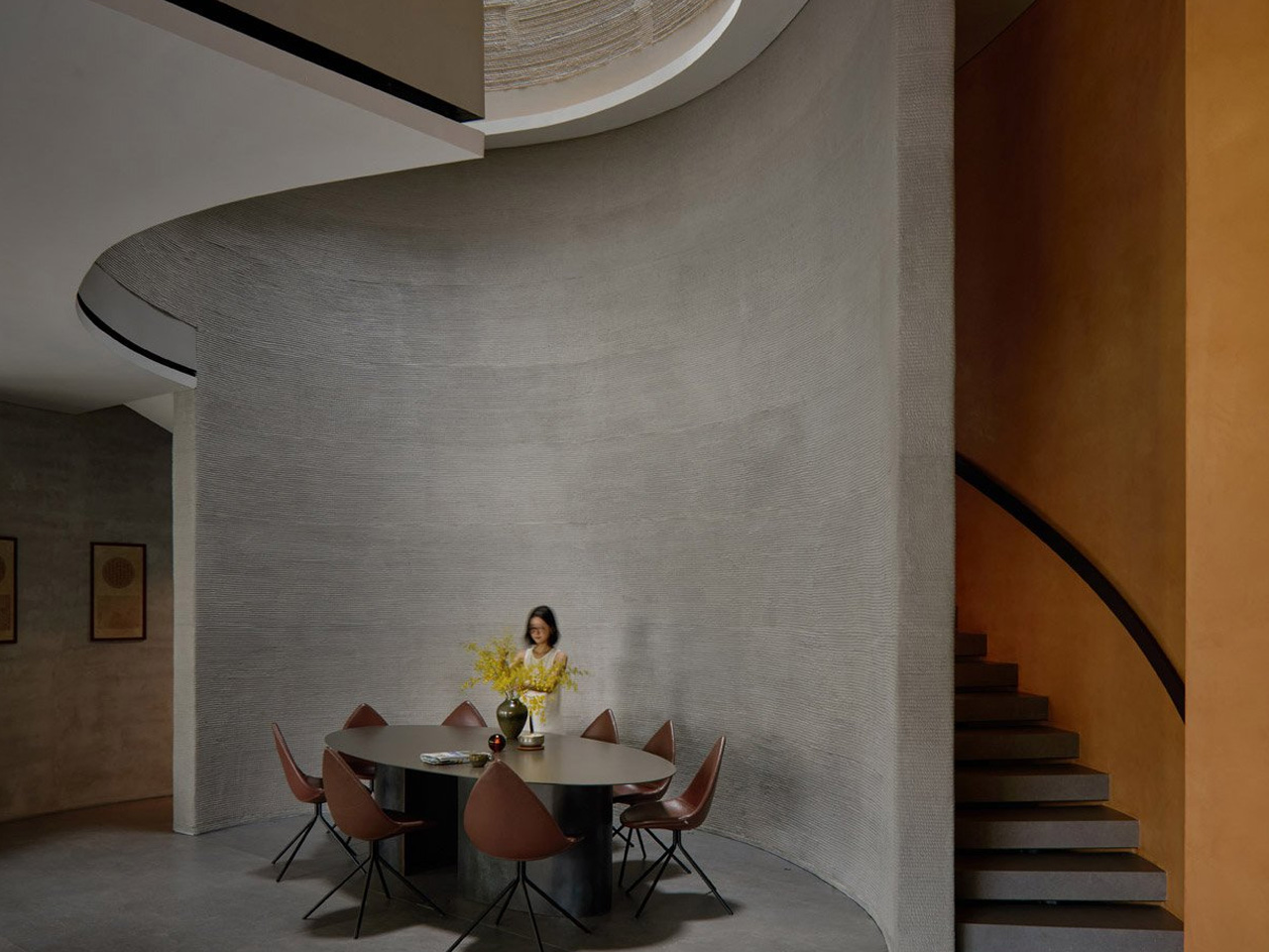 Utility and comfort are not afterthoughts here. The four levels accommodate living, dining, and private spaces with an efficiency born of digital design. Each floor is carefully programmed for function, yet the overall experience is surprisingly open and flexible. The home’s structural system, made possible by the strength of 3D-printed concrete, allows for fewer internal supports and more generous spans, freeing the interior from the constraints of traditional construction.