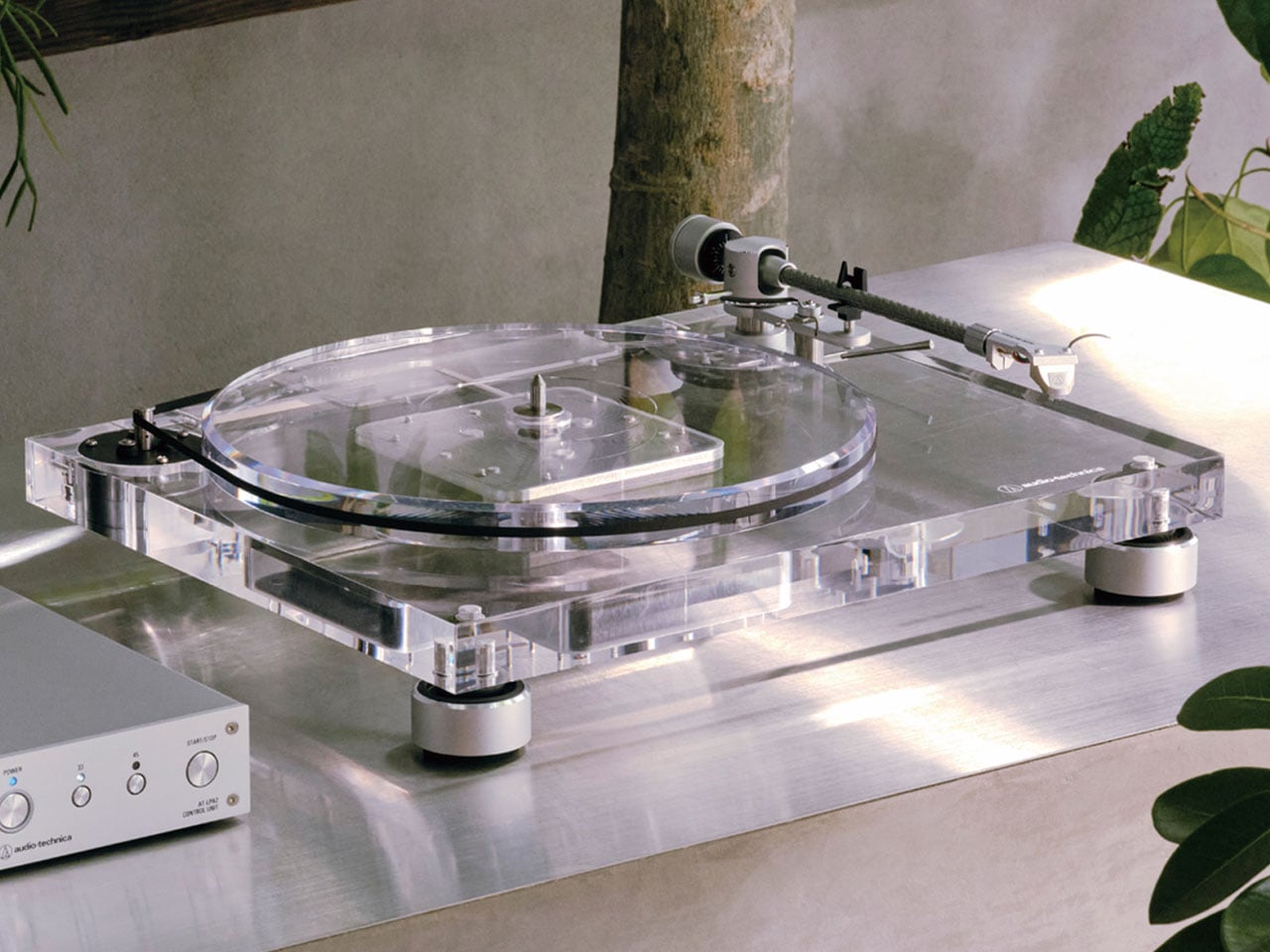 Audio-Technica’s AT-LPA2 is a transparent turntable that doubles as both a sculpture and a hi-fi. The 30mm-thick acrylic body and 20mm platter cut a minimalist silhouette, while the clear construction serves a practical purpose: vibration damping for superior analog playback. The density of acrylic eliminates unwanted resonance, turning every spin into a study in sonic purity.
