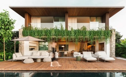 The interior offers a configuration that feels both intuitive and surprising. The first floor blends living, dining, and kitchen functions into a single, sunlit space. Every corner is carefully resolved, with built-in storage and custom cabinetry that avoids clutter without sacrificing daily utility. The kitchen is compact yet complete, while the adjoining living area manages to accommodate a sofa bed and a small table, revealing the designer’s commitment to flexibility. A secondary bathroom on this level makes it an ideal living space to accommodate guests or families.