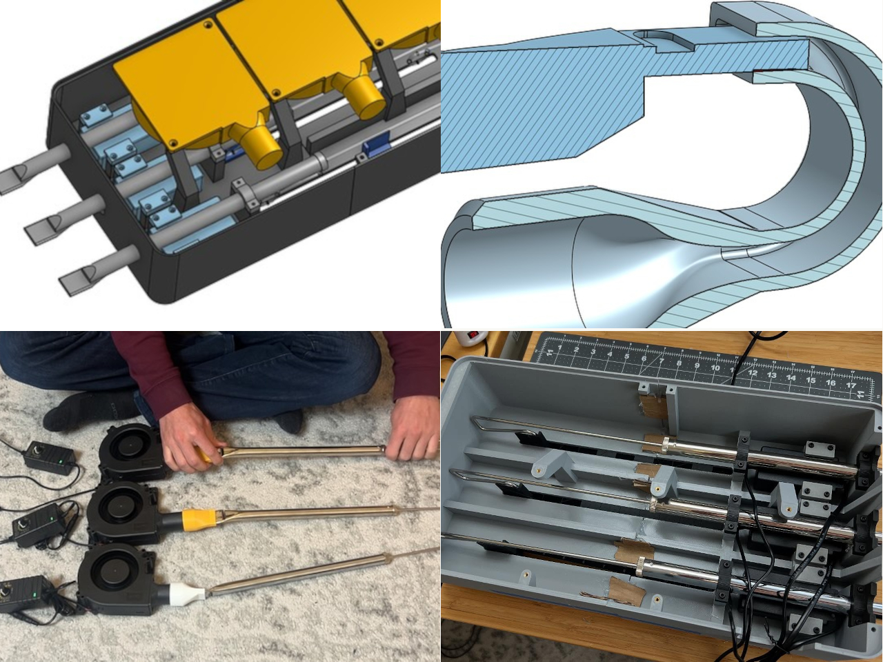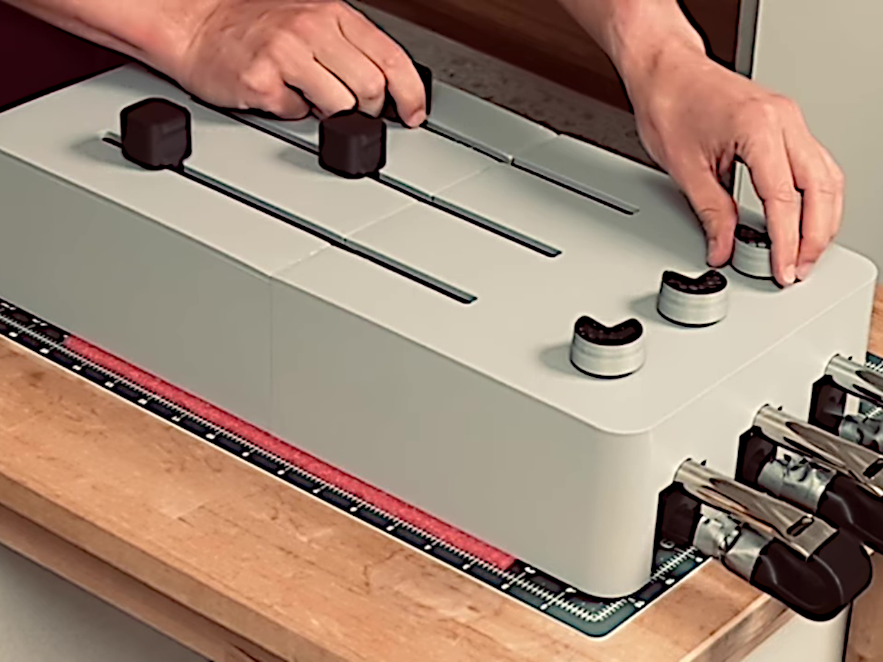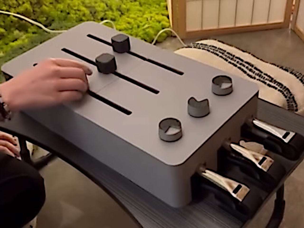 This “synthesizer” is actually powered by three slide whistles and computer fans, creating what Chris calls a “slide flute drone instrument.” It’s an acoustic instrument masquerading as an electronic one, and the result is both charming and surprisingly musical. The beauty of the Pneumatone lies in its clever engineering. The sliders on the synth-box directly couple to the sliders in the slide whistles, allowing for precise pitch control. What appear to be volume knobs are actually speed controllers for computer fans that feed air into the whistles, giving the player control over dynamics and sustain. While there’s some warbling at certain pitches due to the air path design, this quirk actually adds character rather than detracting from it.