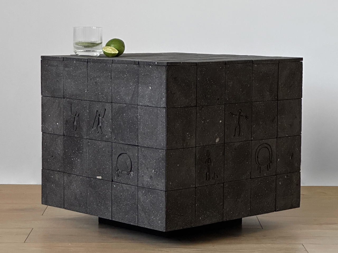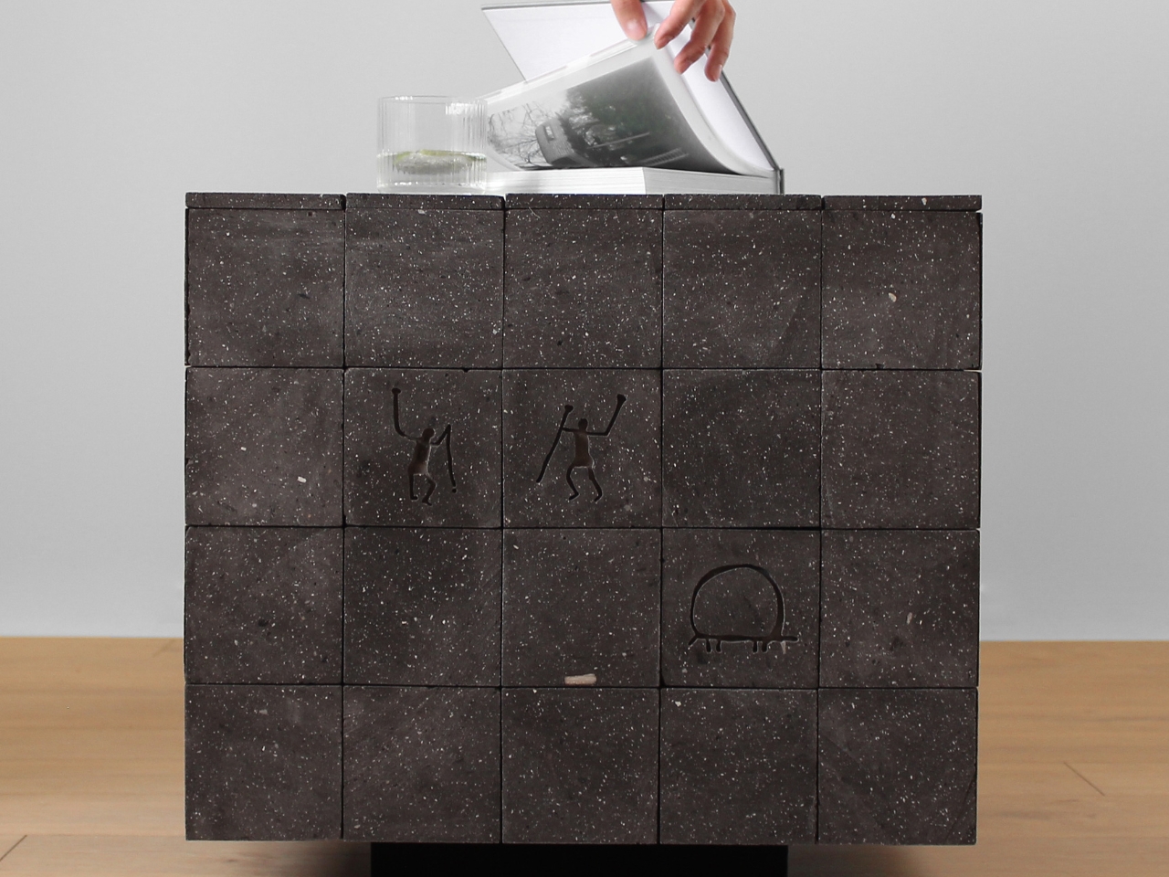 The Tuff Table concept showcases modular versatility. Constructed from square tuff tiles, the table can be customized in size and arrangement, allowing each piece to be unique while maintaining a cohesive aesthetic. The natural color variations in tuff, from golden light brown to deep reds and purples, depend on the specific quarry and mineral content. The designers have integrated petroglyph motifs into select tiles, using carving techniques inspired by ancient Armenian artisans.
