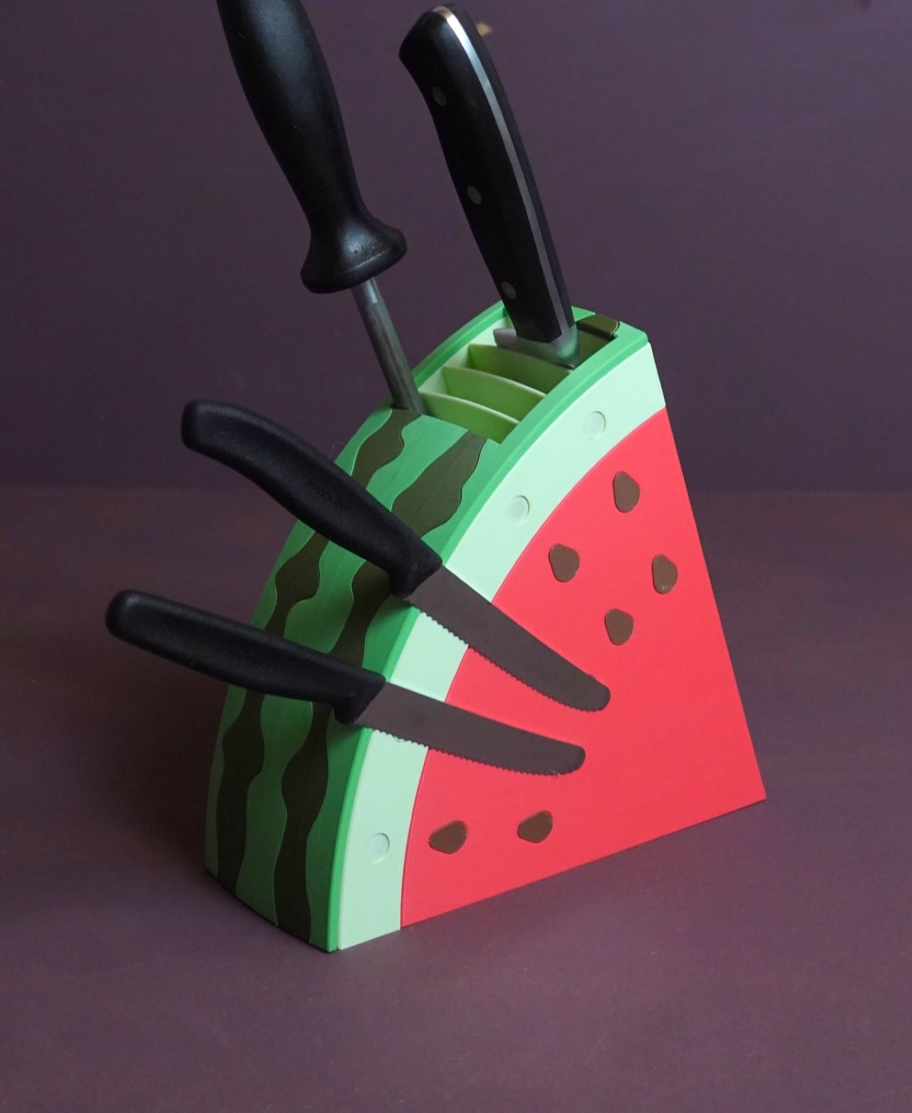 The beauty of this Watermelon Knife Block is that you can make it yourself instead of buying it. For as little as $9 a month, you can become a member of Gazzaladra’s Thangs3D page, where you get access to all his 3D printed designs. You can then print as many products as you want (and as many times as you want too). If your knife block gets damaged, just re-print the parts you need, and if your friends come over and rave about your gorgeous kitchen accessory, go ahead and print one for them too!