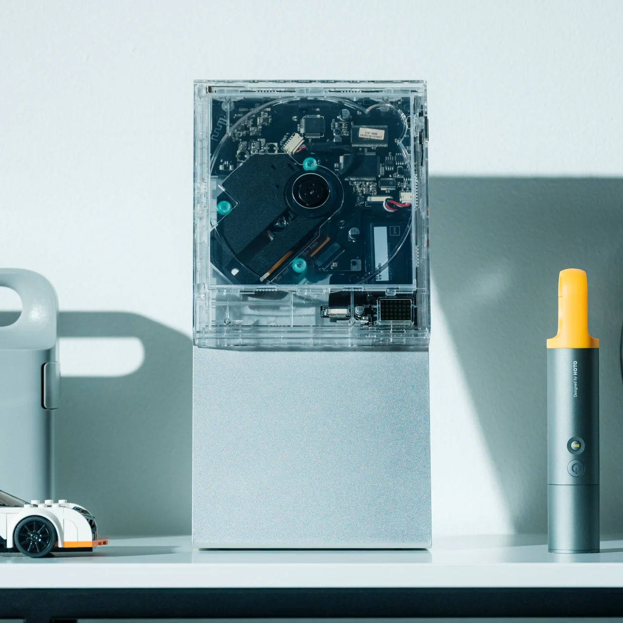 The ClearFrame CD Player transforms music into a visual experience, making it a stunning addition to your nightstand. With its transparent polycarbonate body and exposed circuitry, this device turns every album into an art exhibit. Slip in your favorite CD and let the cover art become part of your bedroom’s aesthetic. The minimalist square silhouette is at home on a shelf, desk, or nightstand, offering a sense of both nostalgia and modernity for those who appreciate physical media.